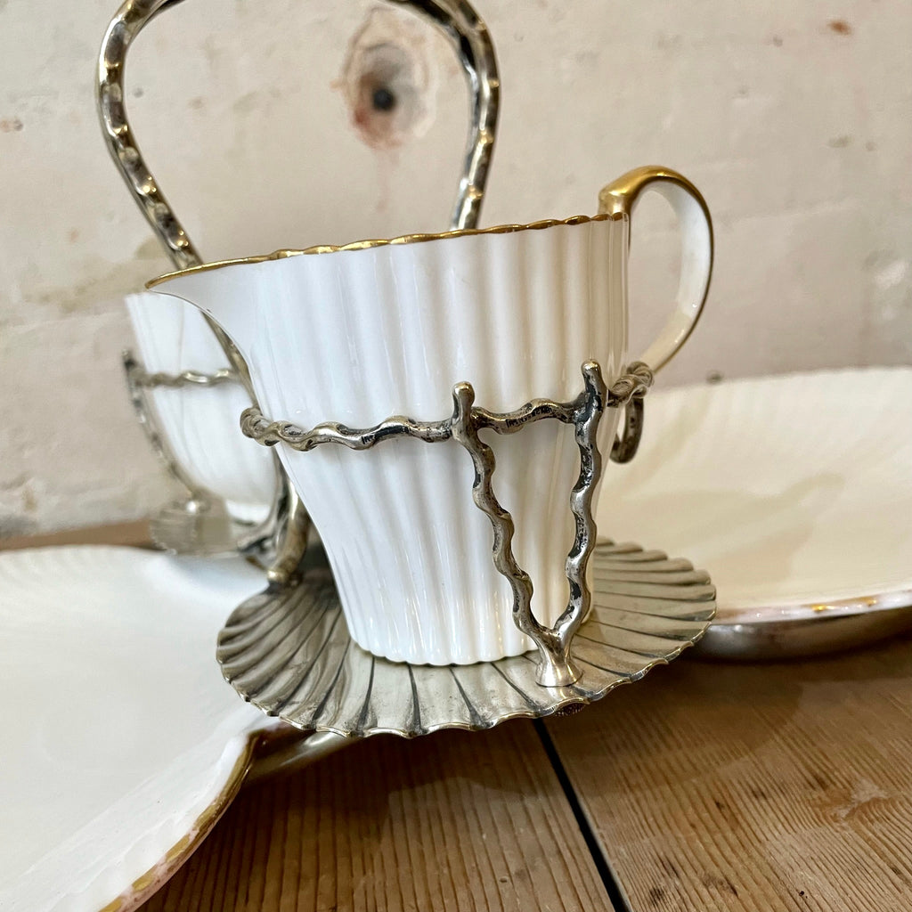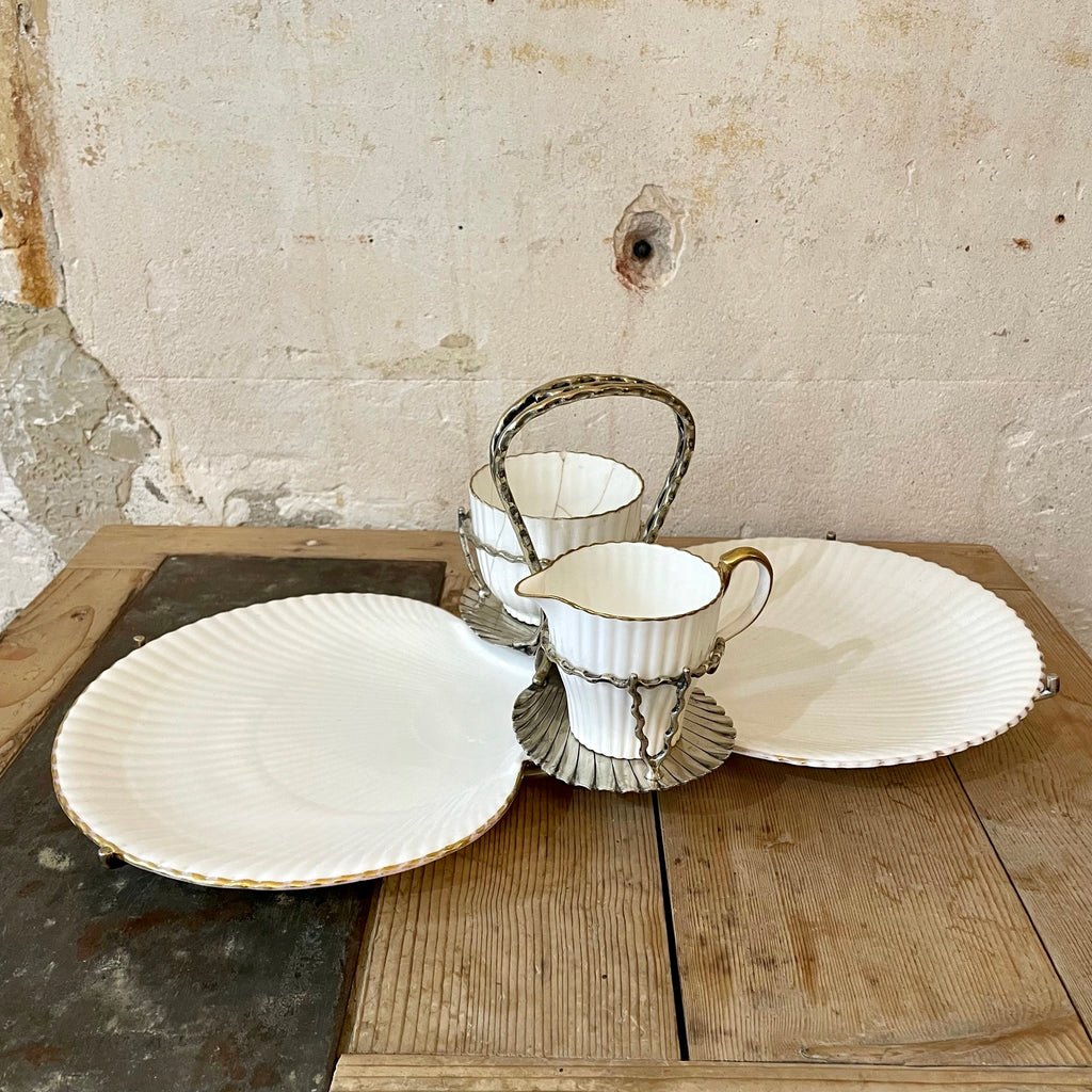/ Ensemble à thé anglais porcelaine Wedgwood et métal argenté