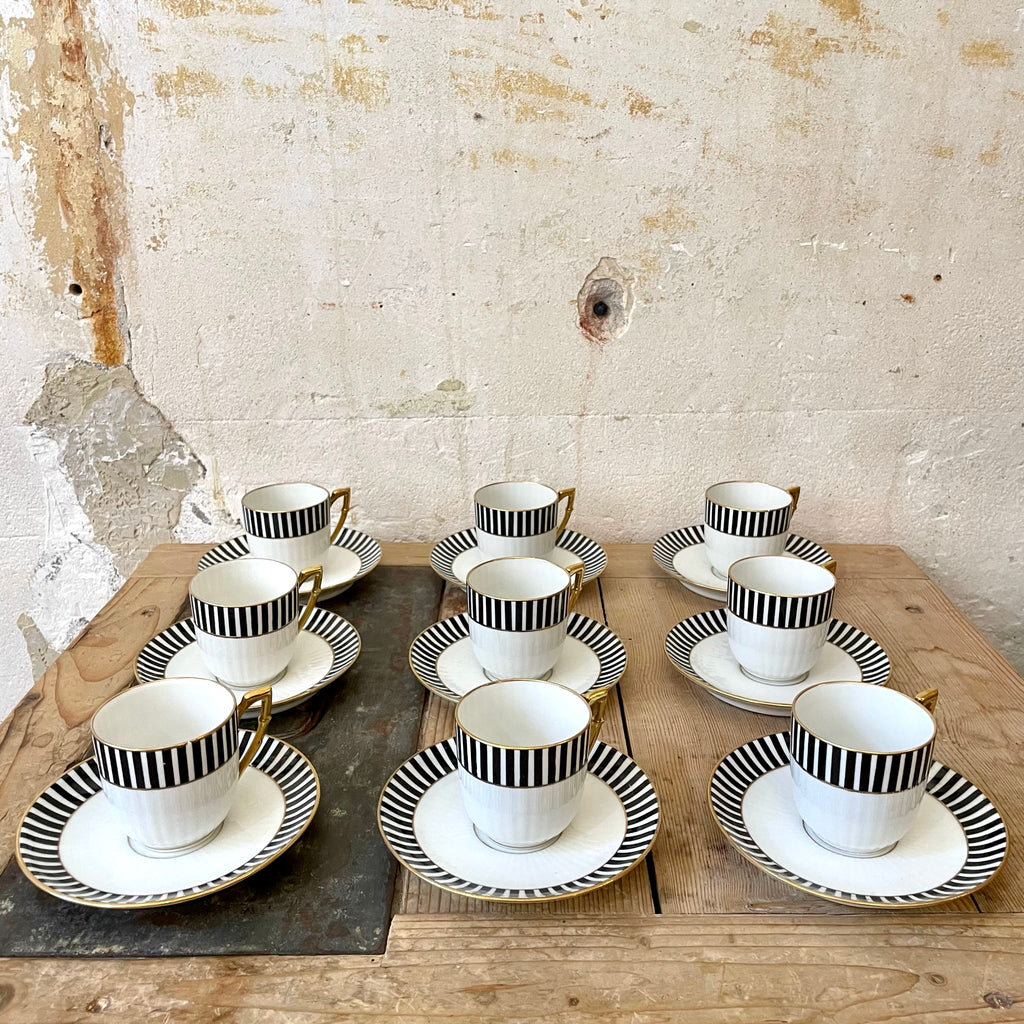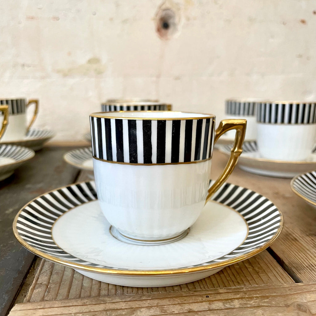 / Ensemble de 9 tasses à café et sous-tasses en porcelaine de Limoges Chabrol et Poirier 1917