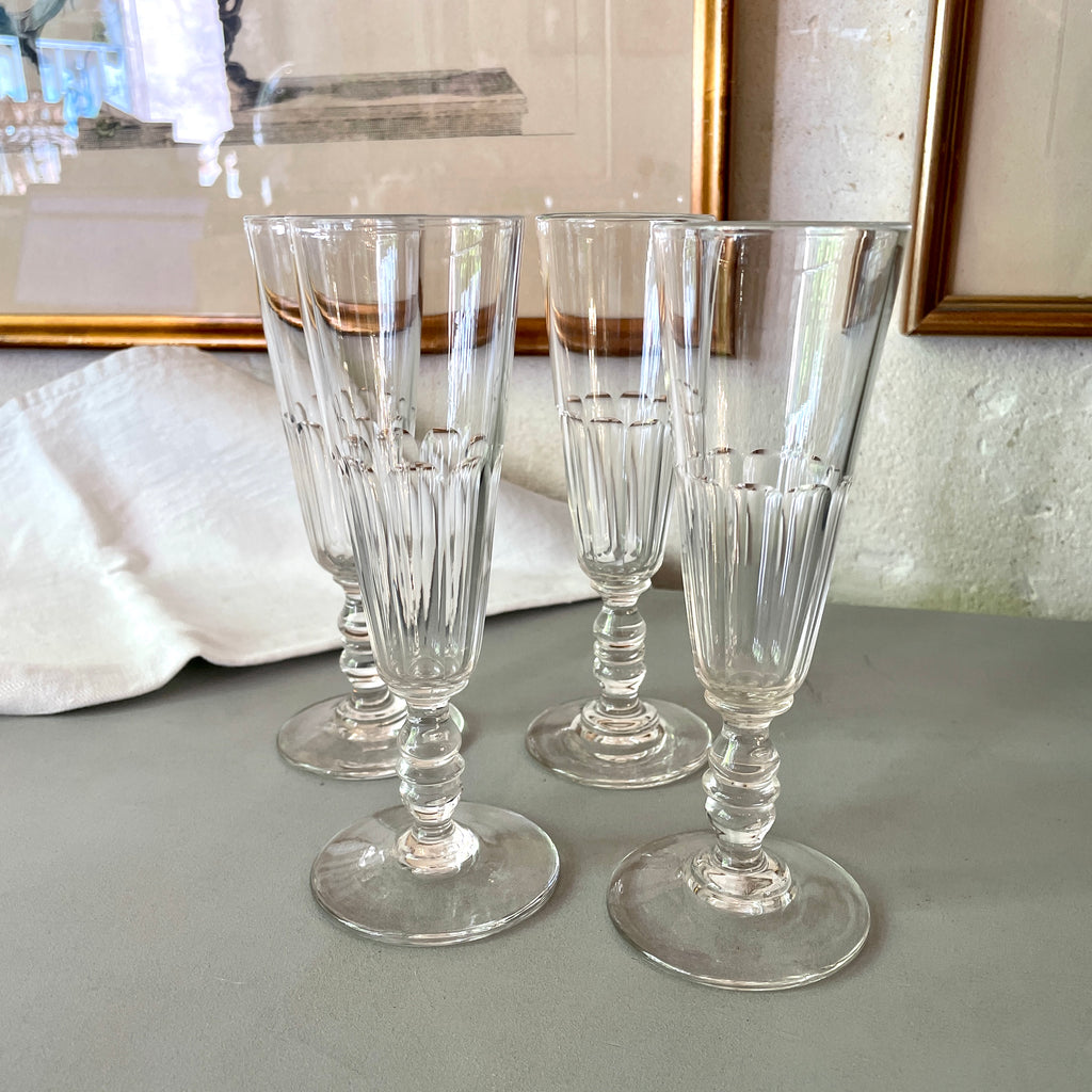 Lot de 4 flûtes à champagne en cristal côtes plates anciennes