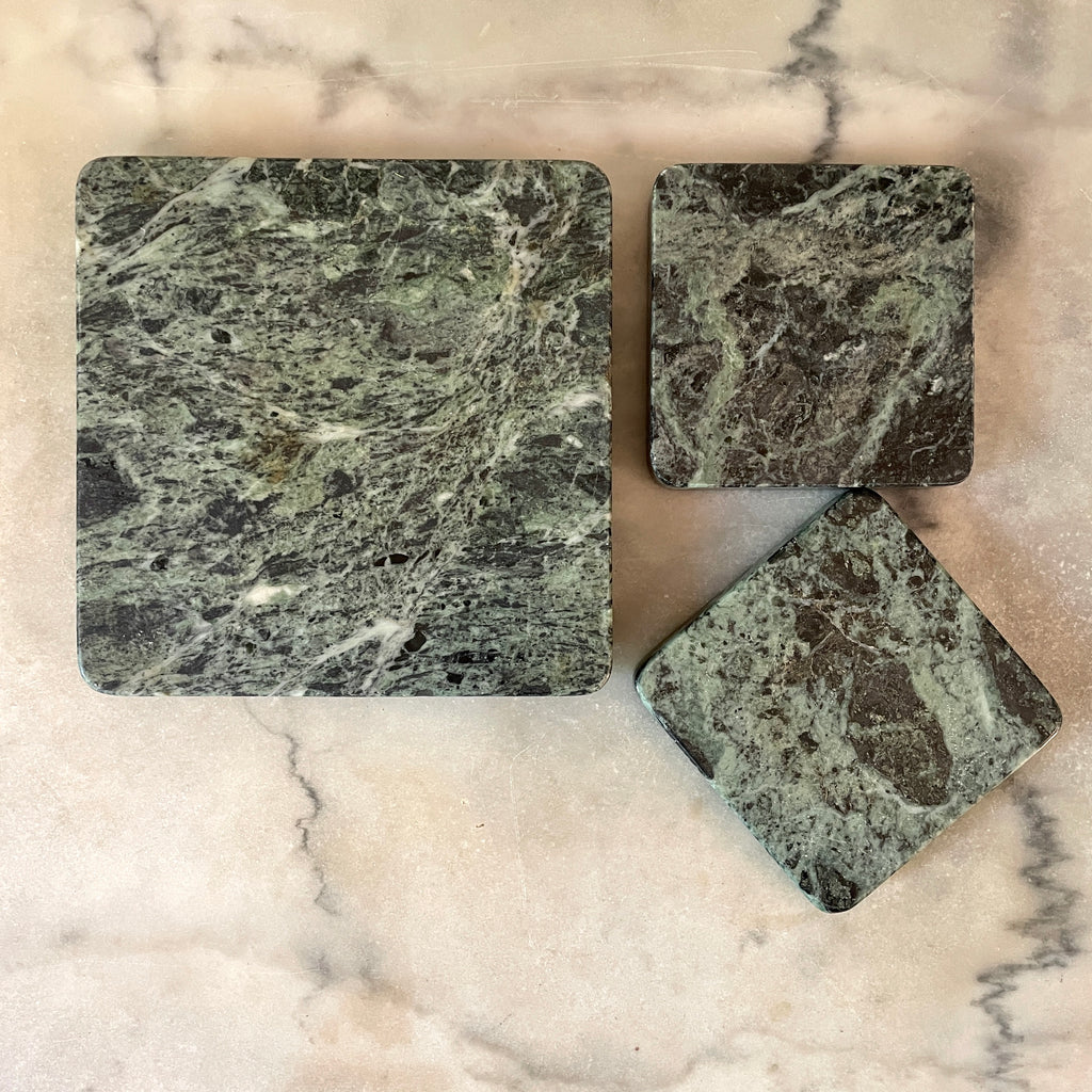 / Ensemble dessous de plat / dessous de bouteilles marbre vert