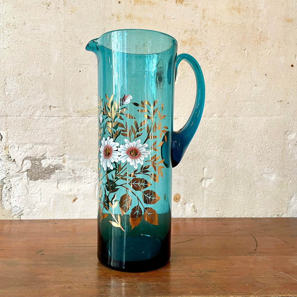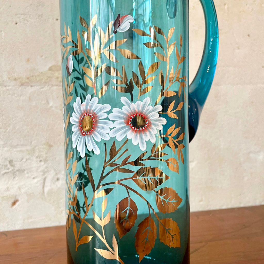 / Grand pichet droit en verre soufflé doré et peint à la main