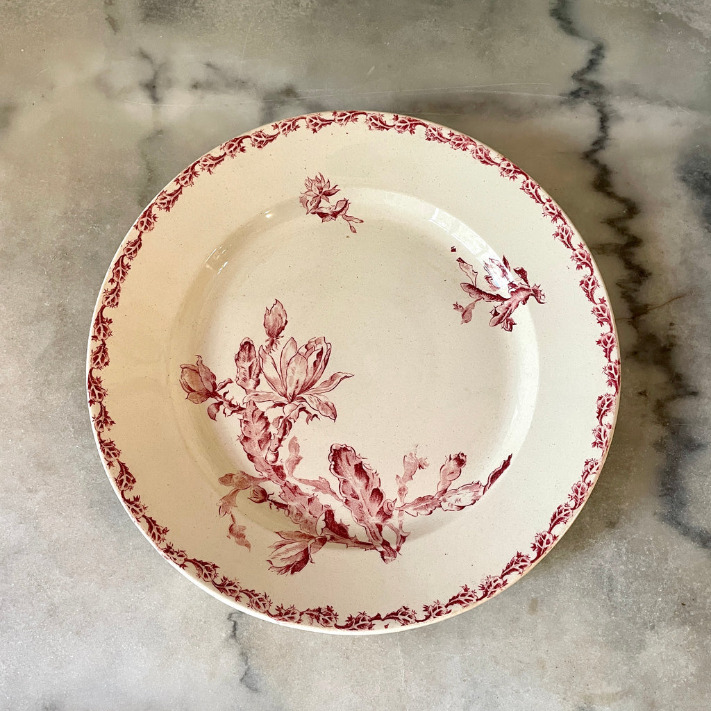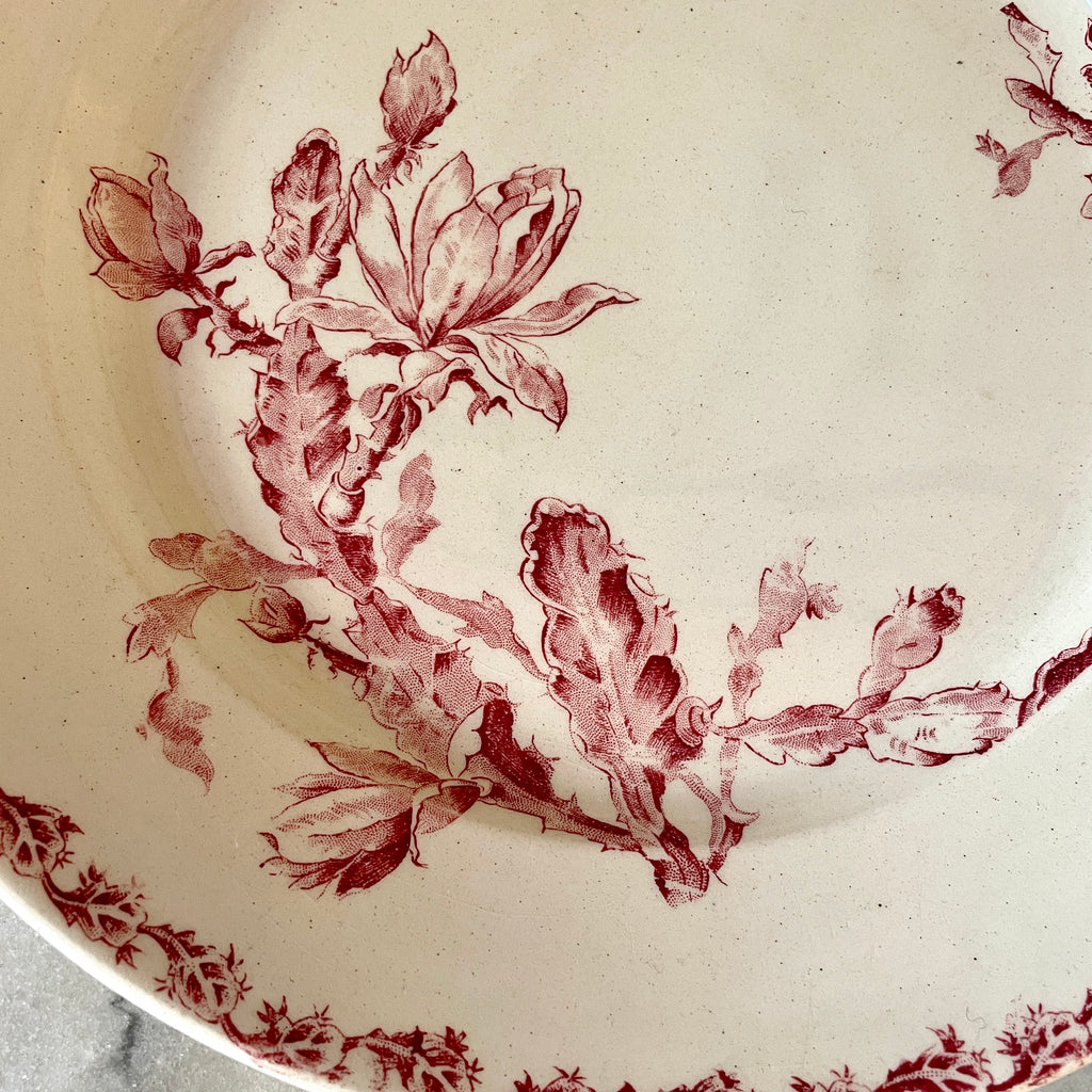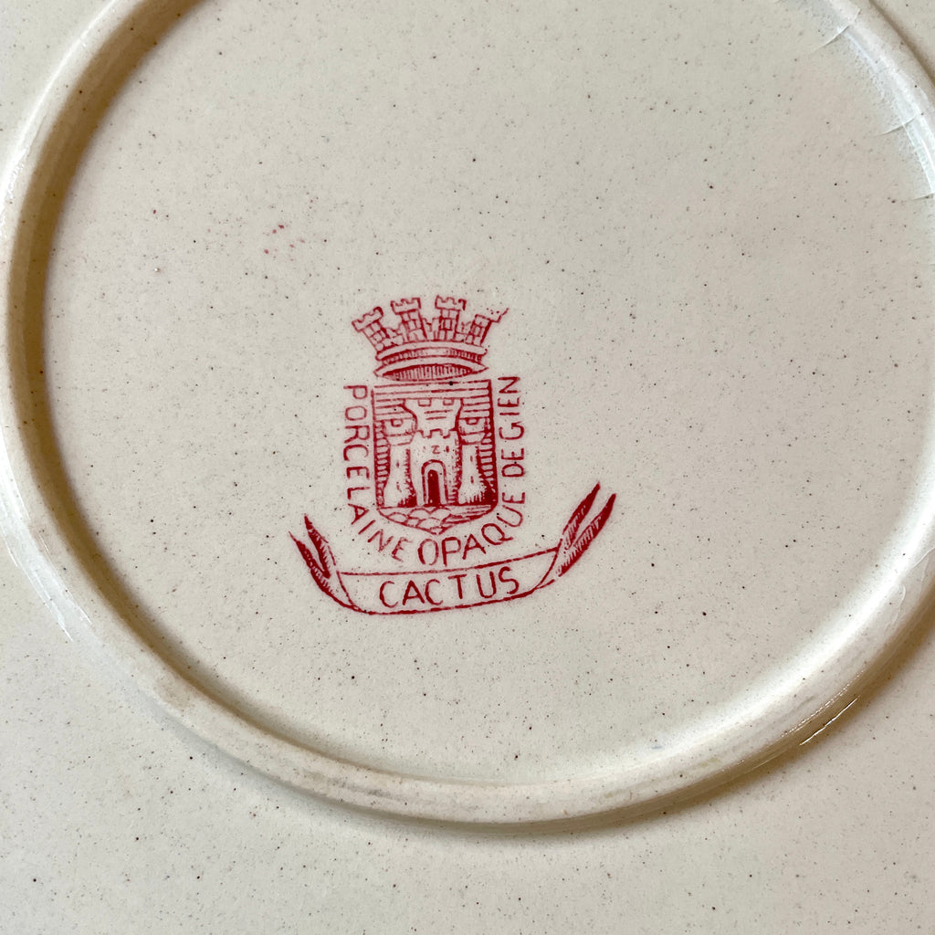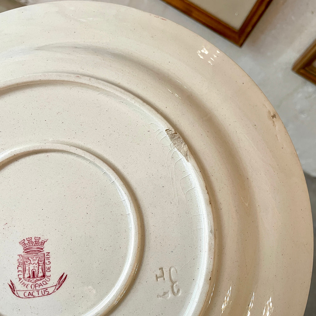 / Grand plat en porcelaine semi opaque Gien modèle cactus rouge