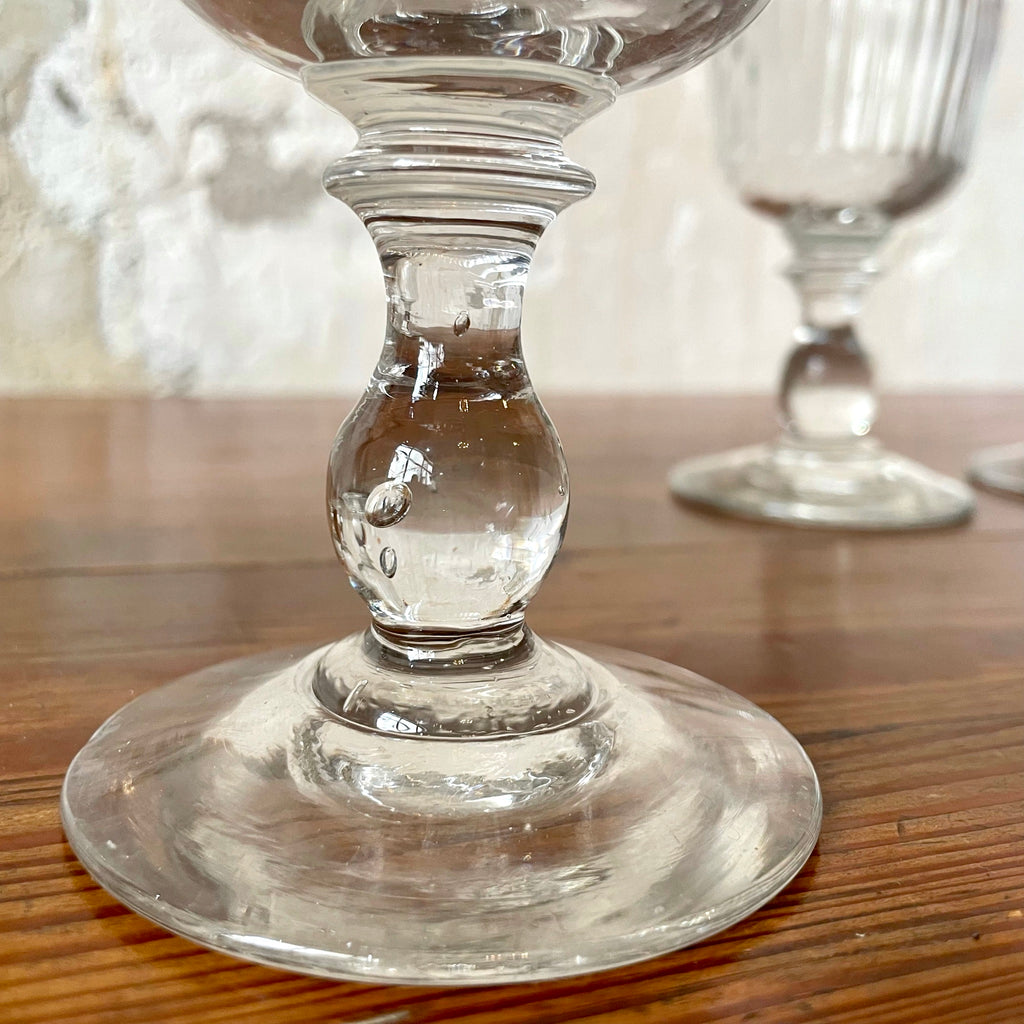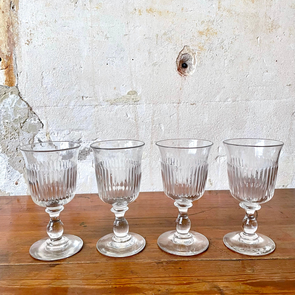 Verre à vin en verre épais XXe. Joliment striés.