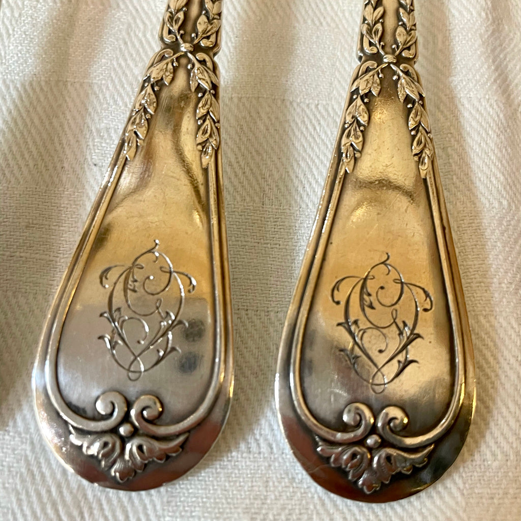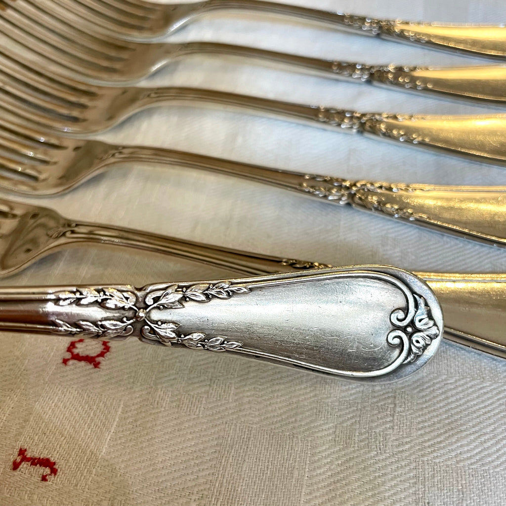 / Lot de 6 fourchettes et 6 cuillères à soupe en argent massif