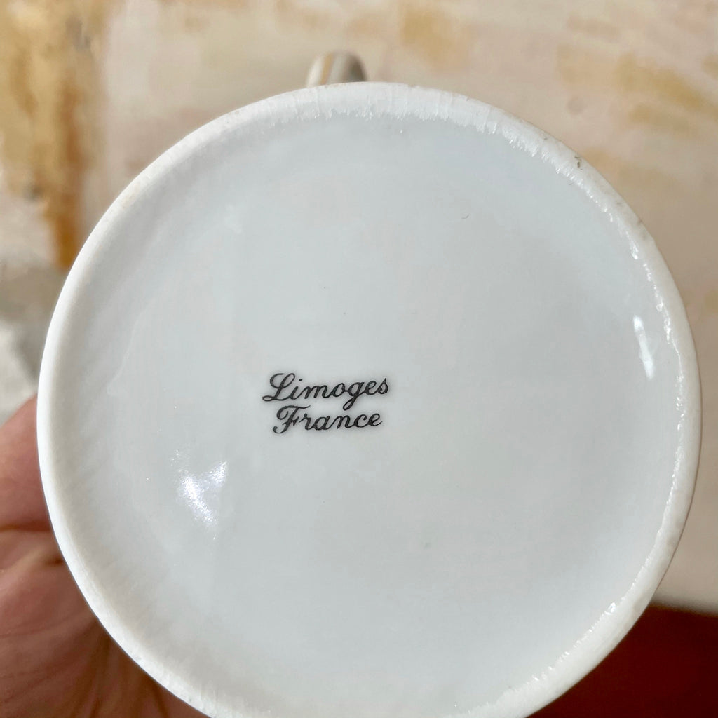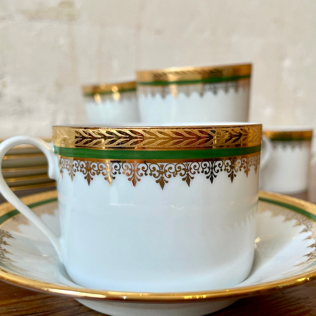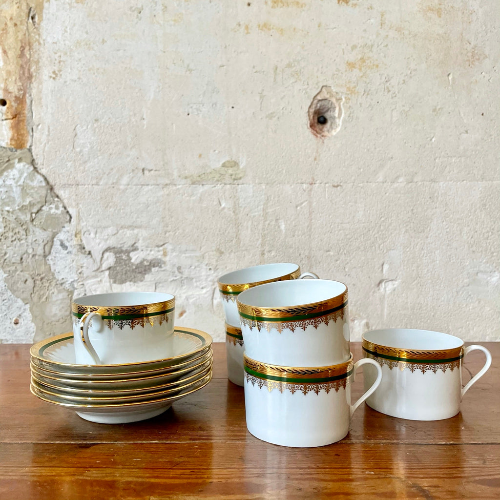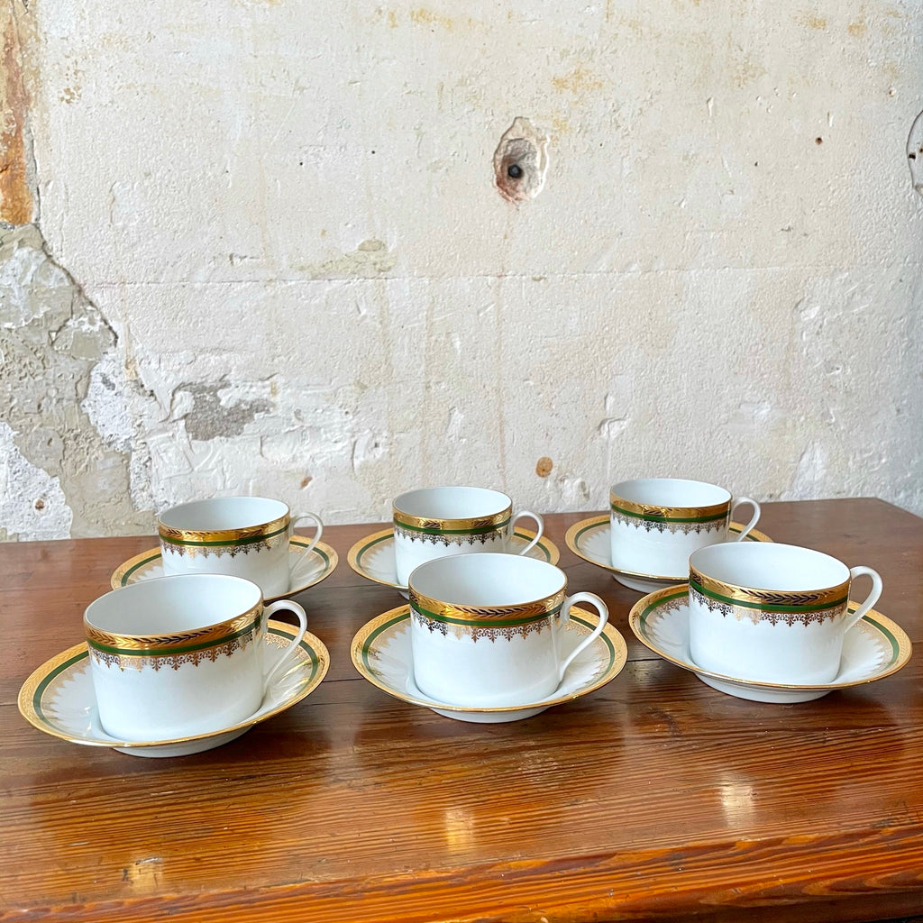 / Lot de 6 tasses à thé en porcelaine de Limoges vert et doré
