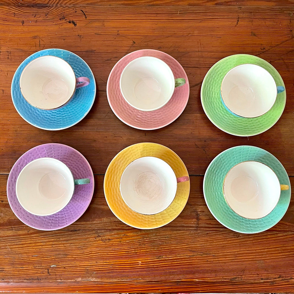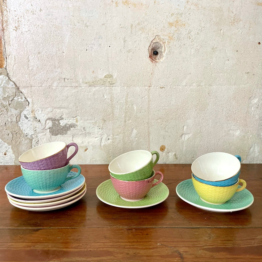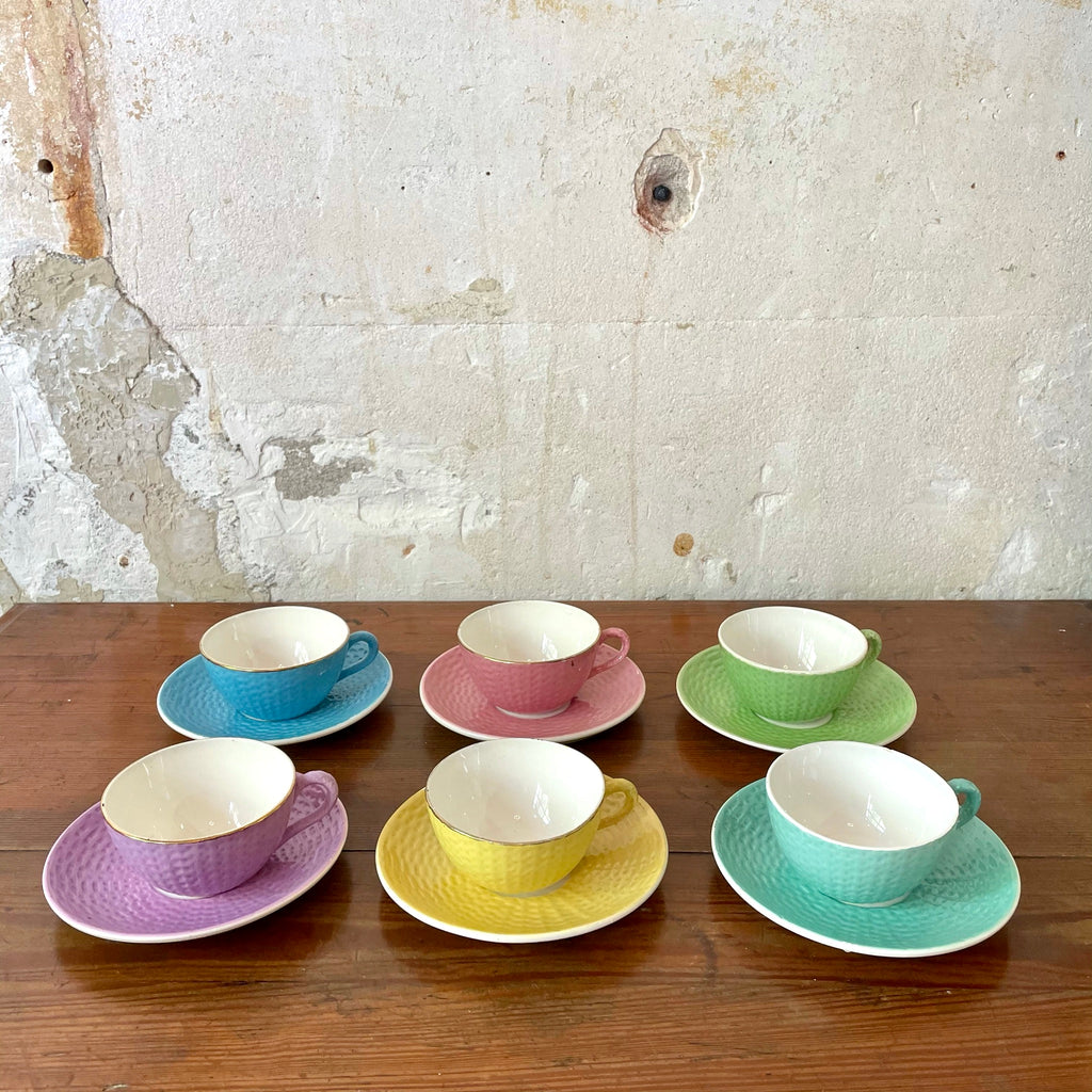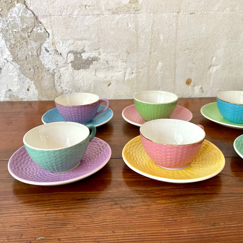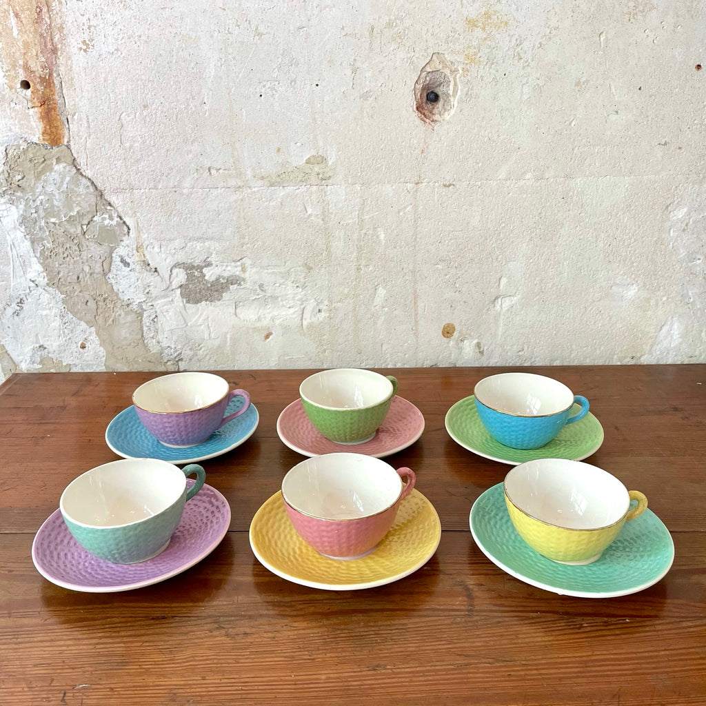 / Lot de 6 tasses et sous-tasses Digoin Sarreguemines
