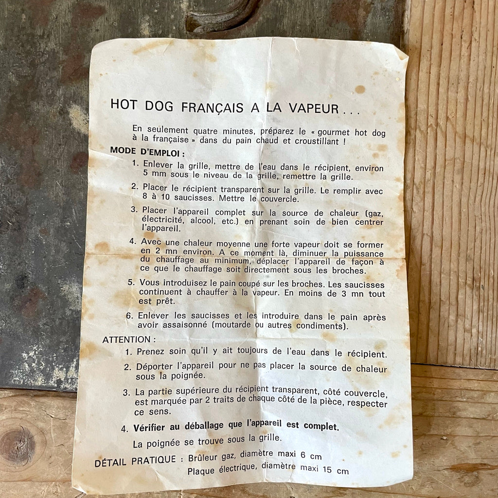 Machine à hot-dog vintage à gaz en bakélite et métal. Contient encore la notice d'utilisation.