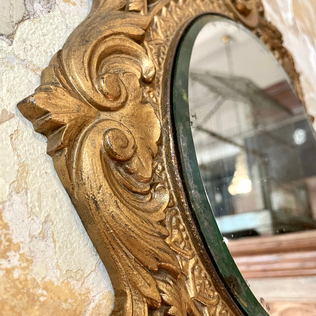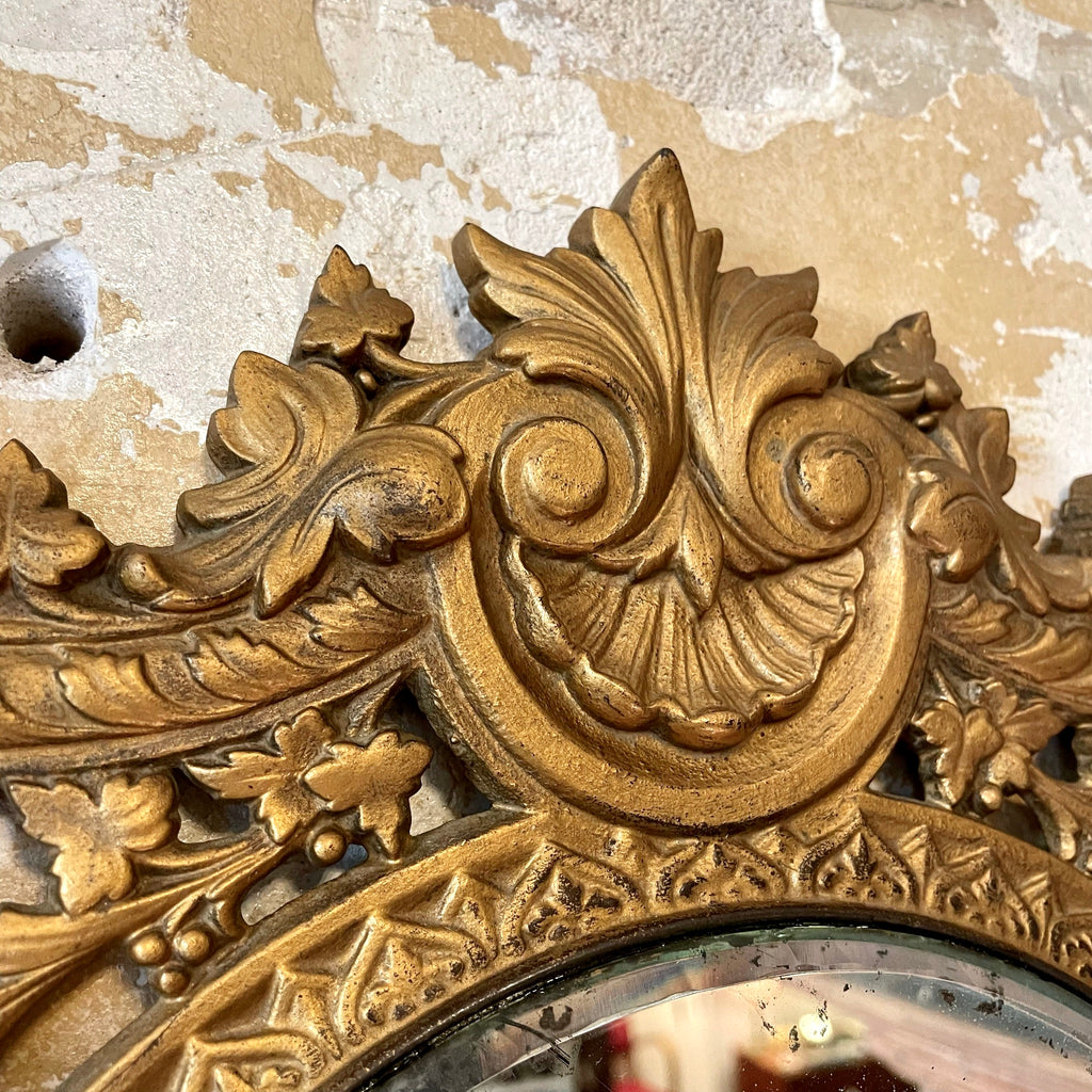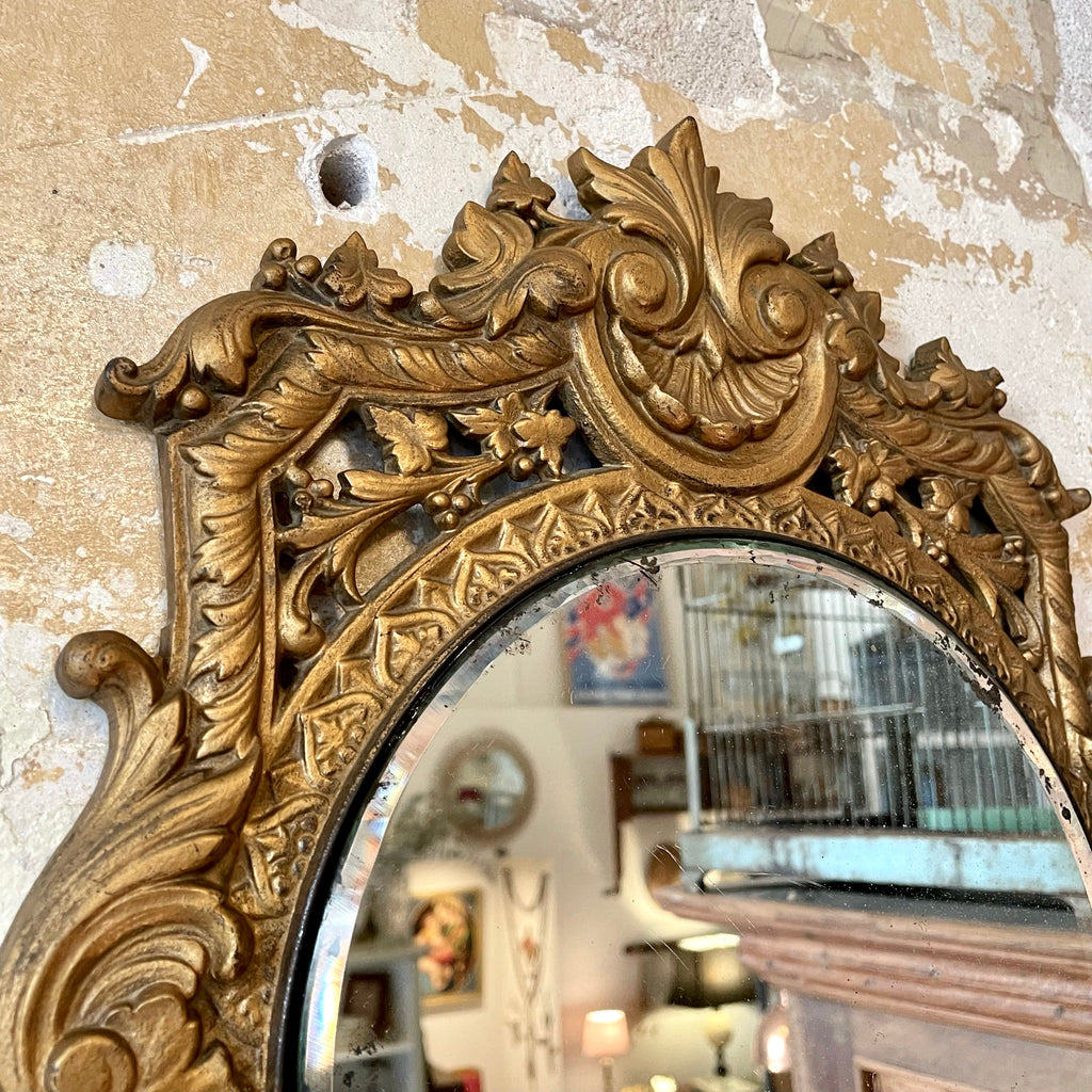 Étonnant miroir mural en bronze joliment travaillé, glace épaisse au mercure biseautée. Époque Napoléon 3.