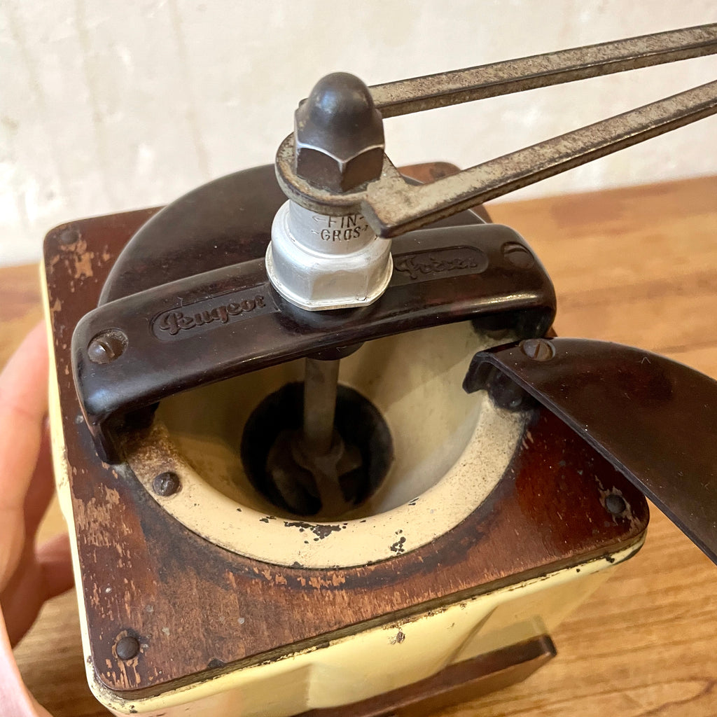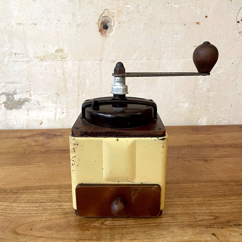 / Moulin à café Peugeot Frères tôle émaillée et bakélite