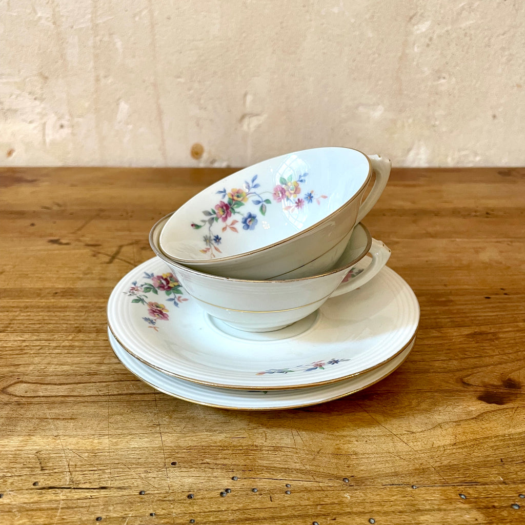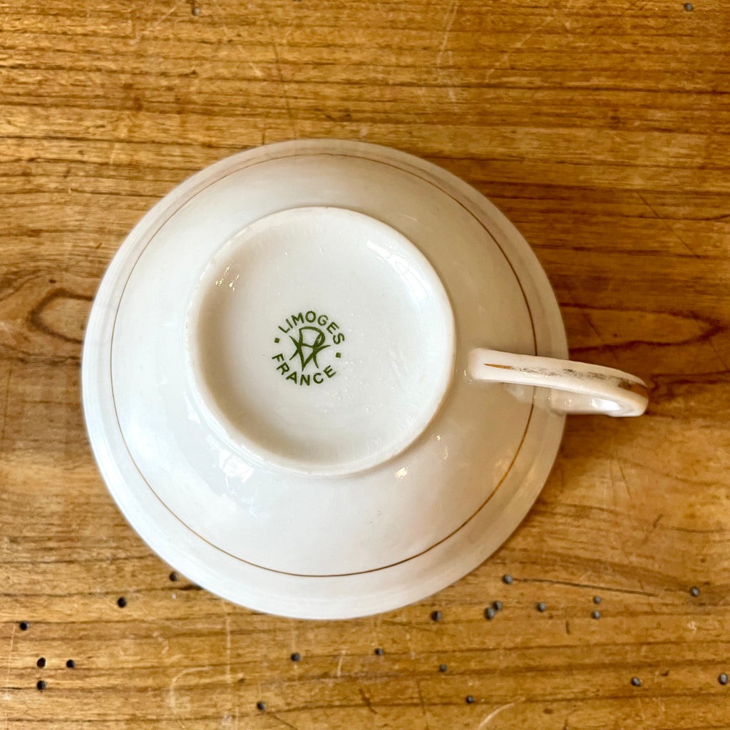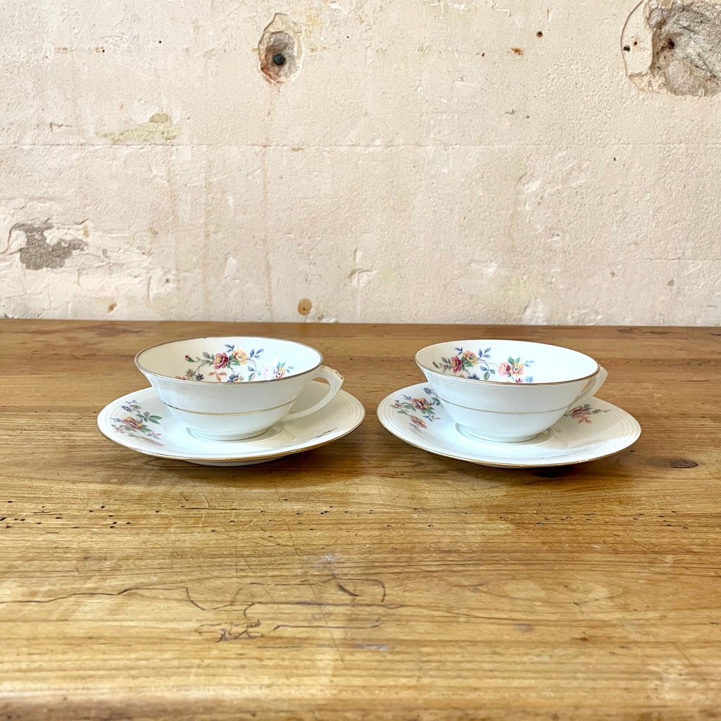 / Paire de tasses à thé en porcelaine de Limoges fleurie