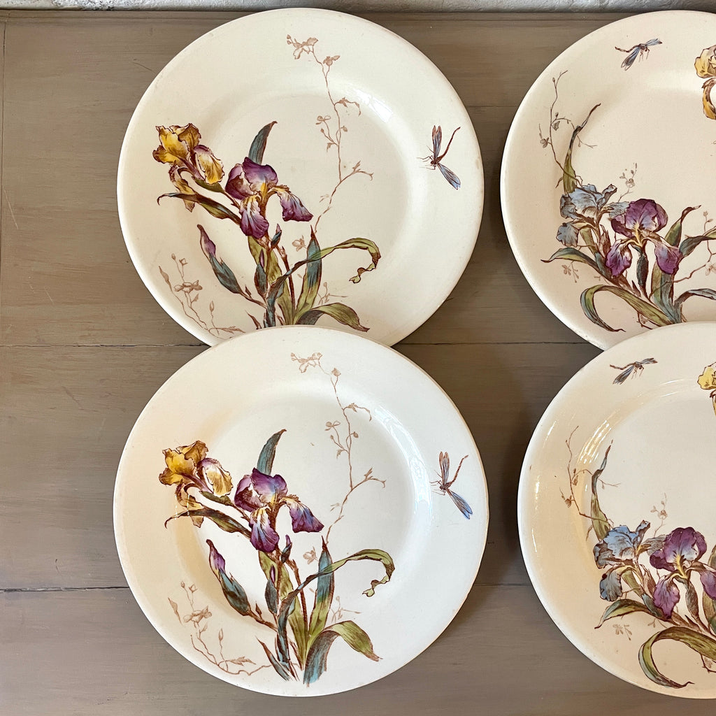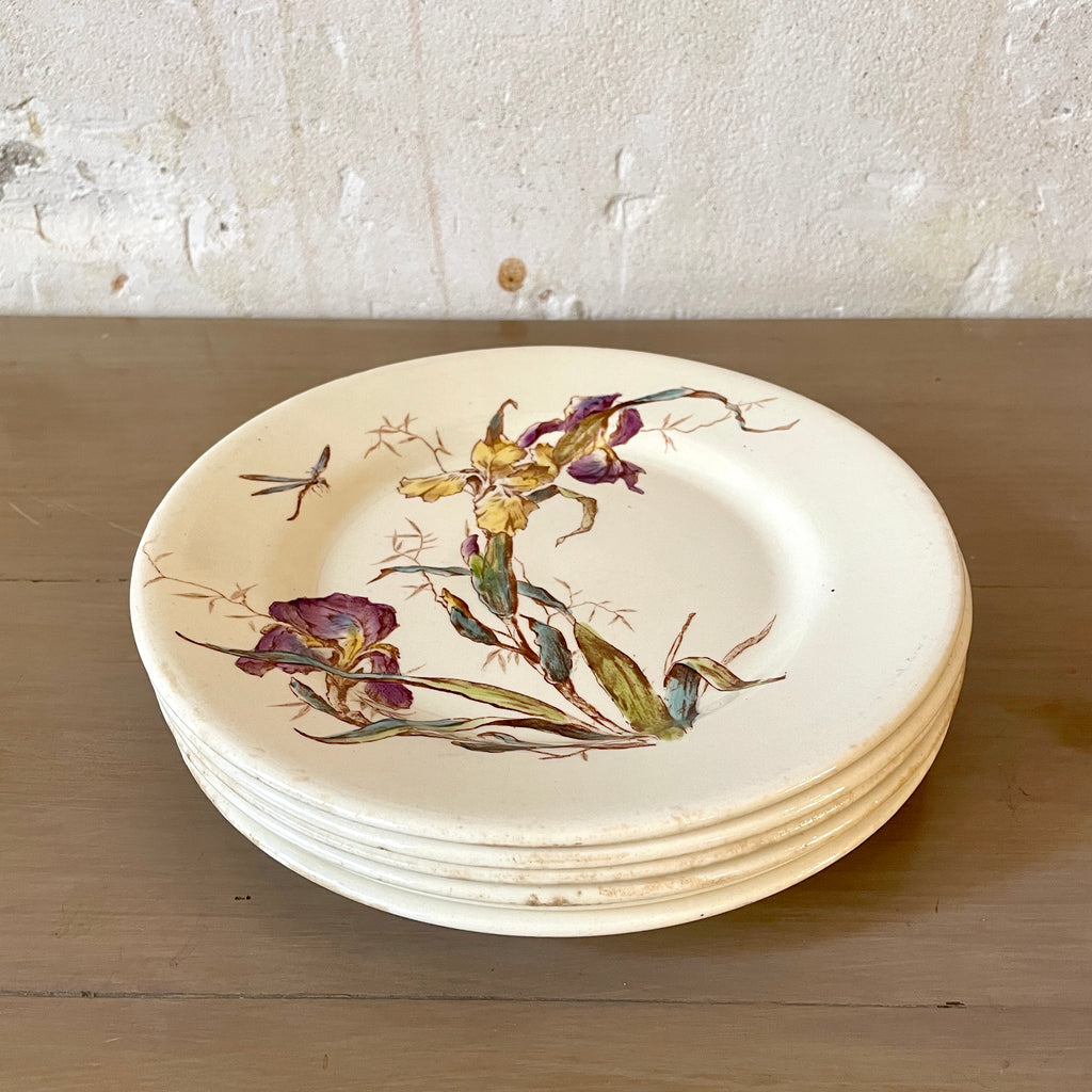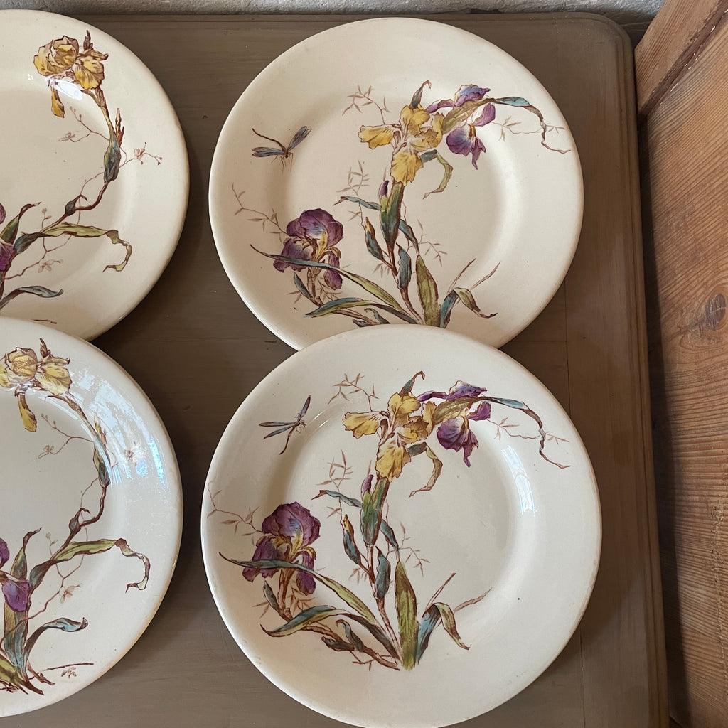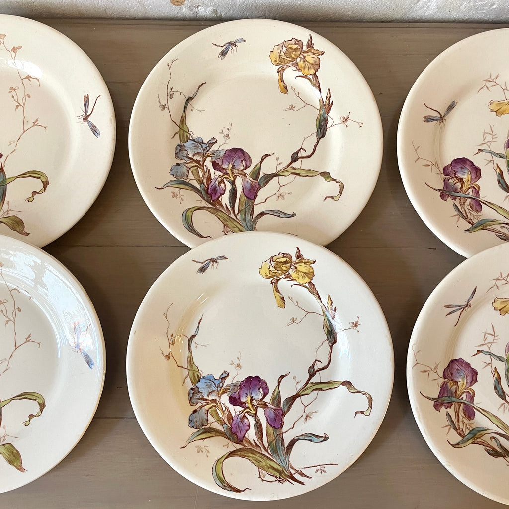 / Lot de 6 assiettes plates Iris faïencerie de Gien Médailles d'or Diplôme d'honneur polychrome XIXe