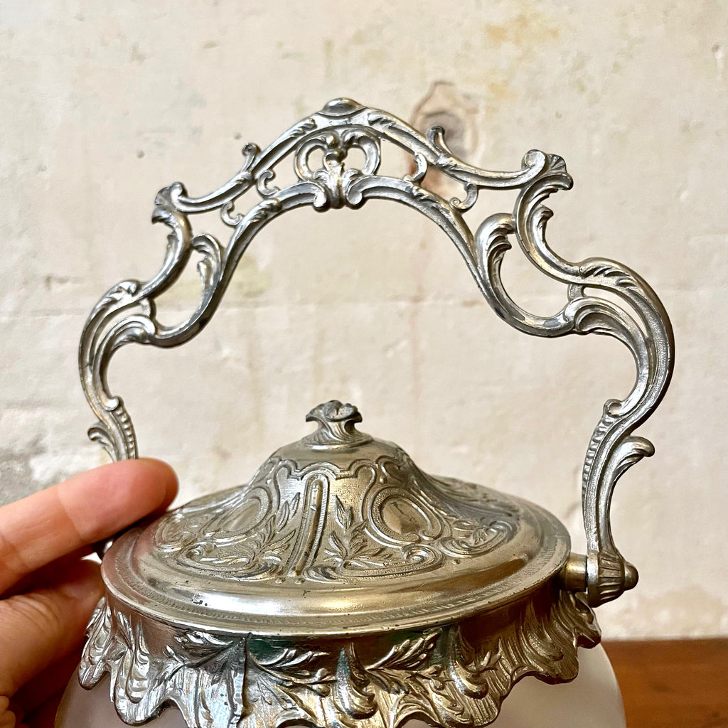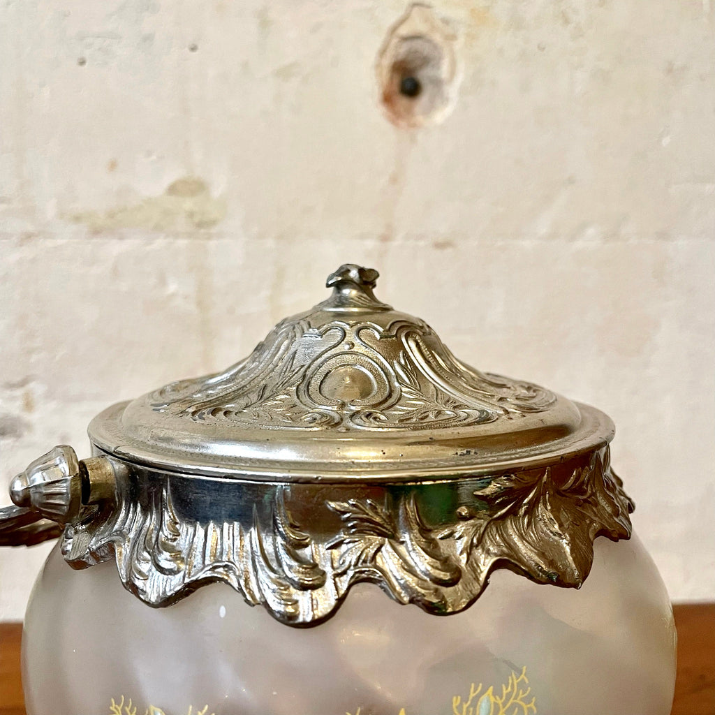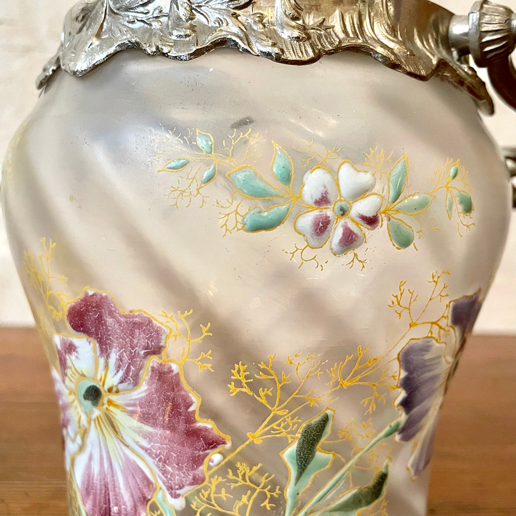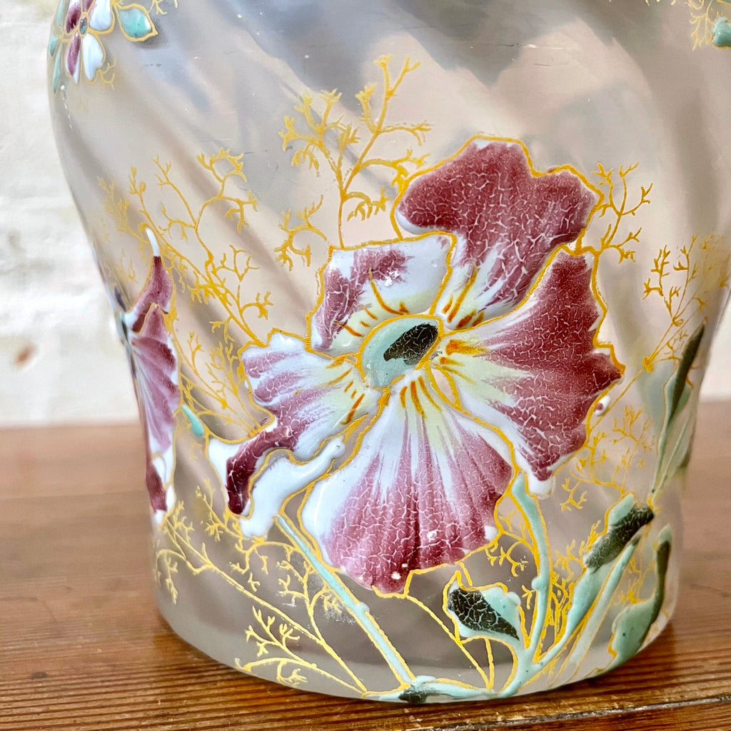 / Pot à biscuit en verre torsadé émaillé décor floral LEGRAS