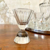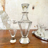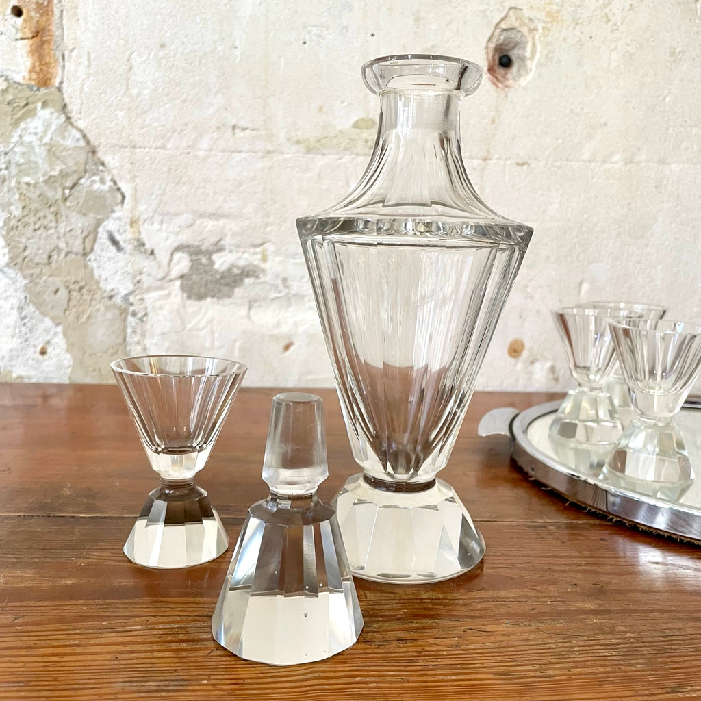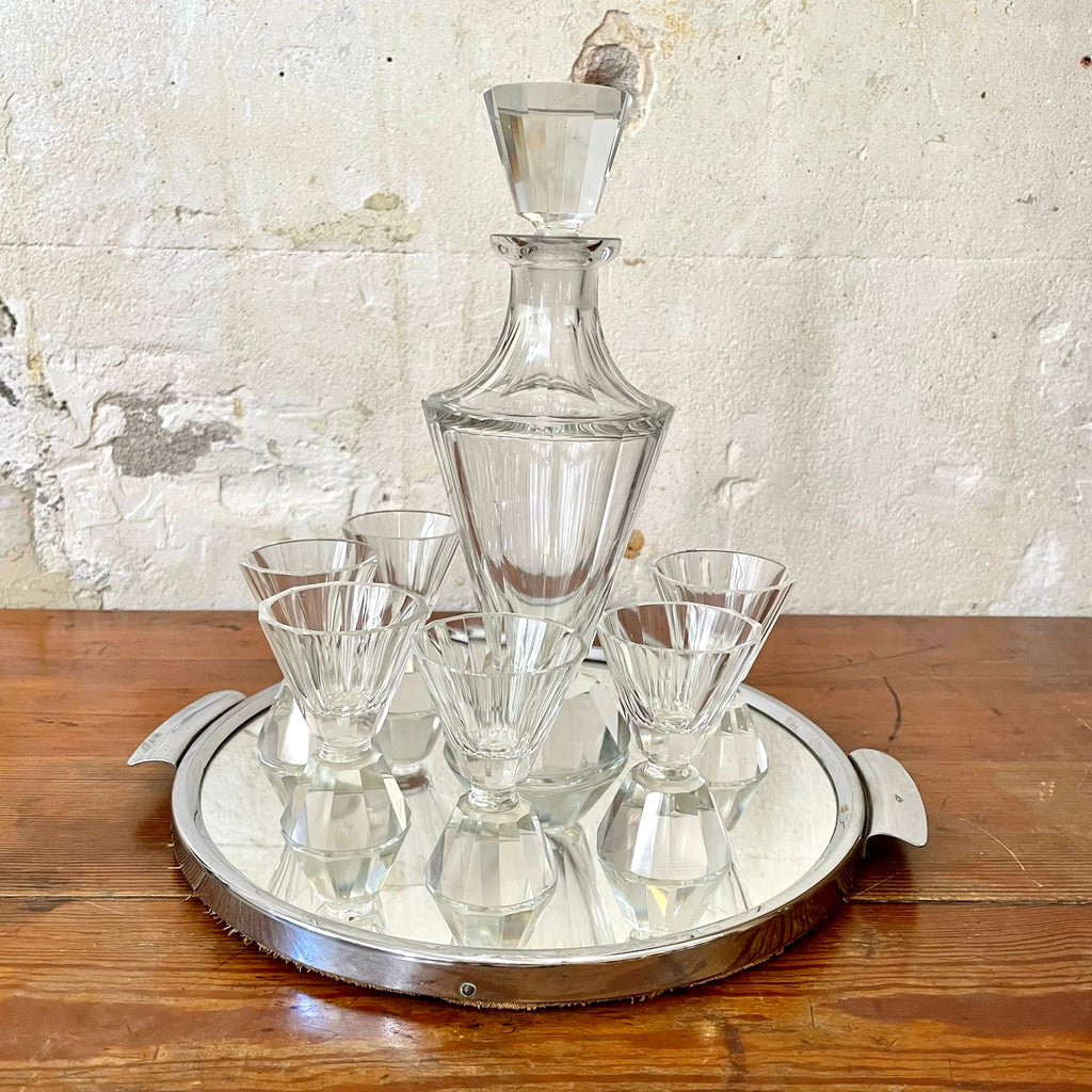 Comprenant une carafe et 6 ravissants verres au pied plein. Très original.