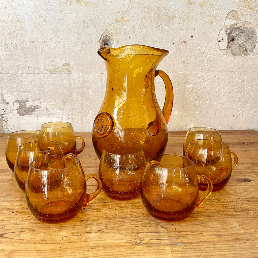 / Service à orangeade ou sangria verre soufflé bullé A/H
