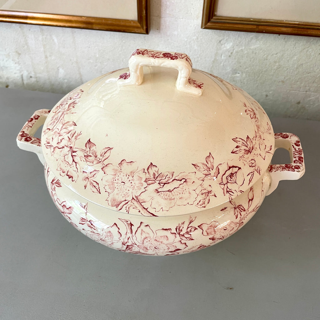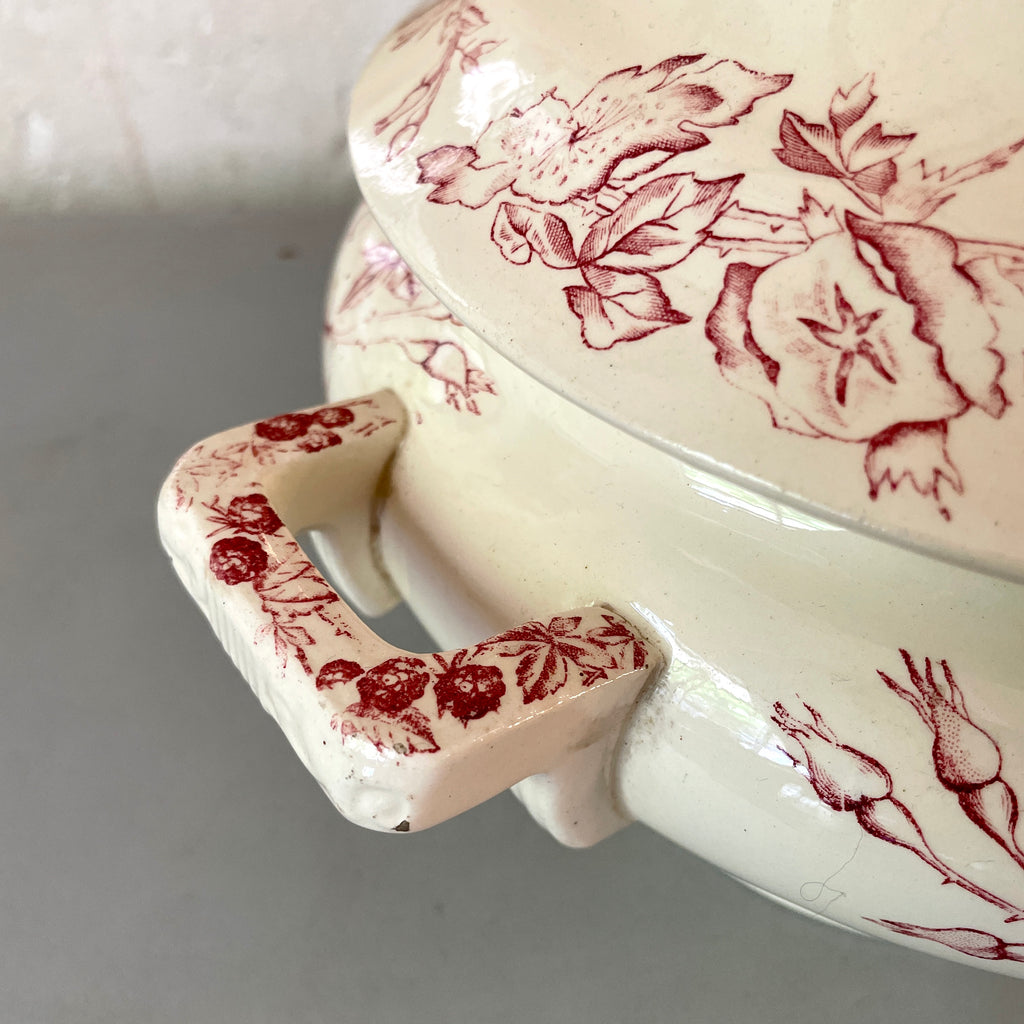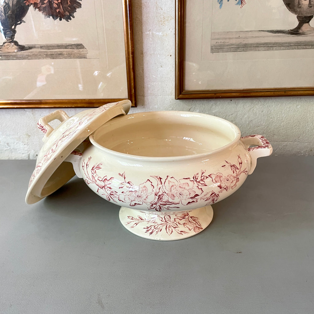 / Soupière sur piédouche Terre de fer Longchamp modèle 'Églantines'