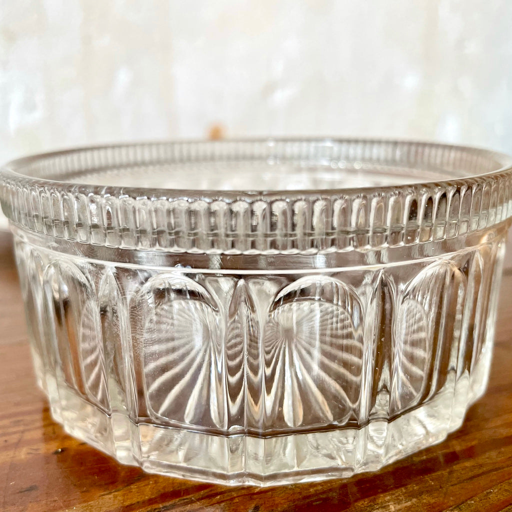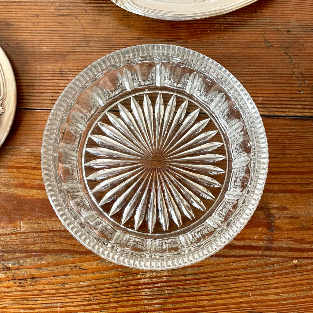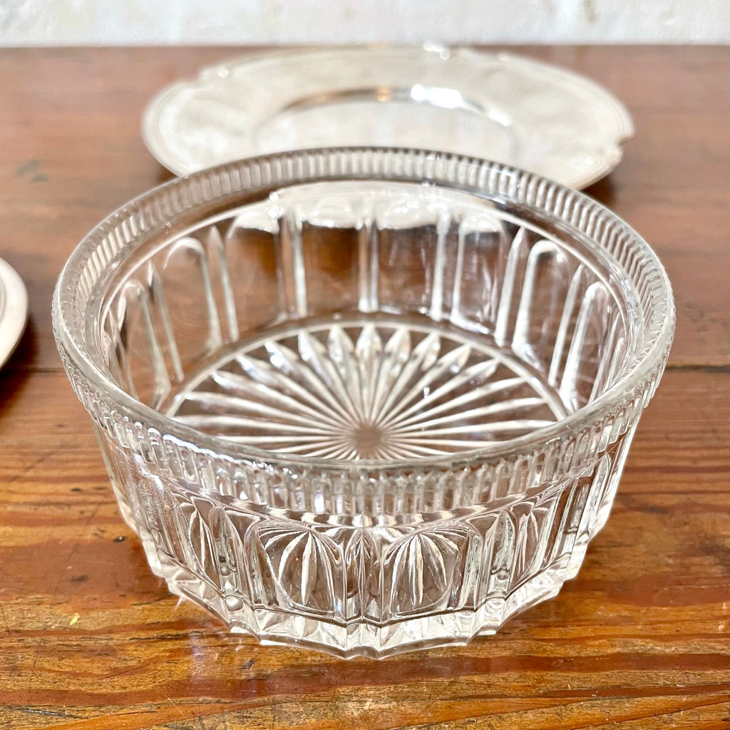Ravissant sucrier ou bonbonnière en verre et métal argenté composé d'une soucoupe, du ramequin et de son couvercle joliment travaillé