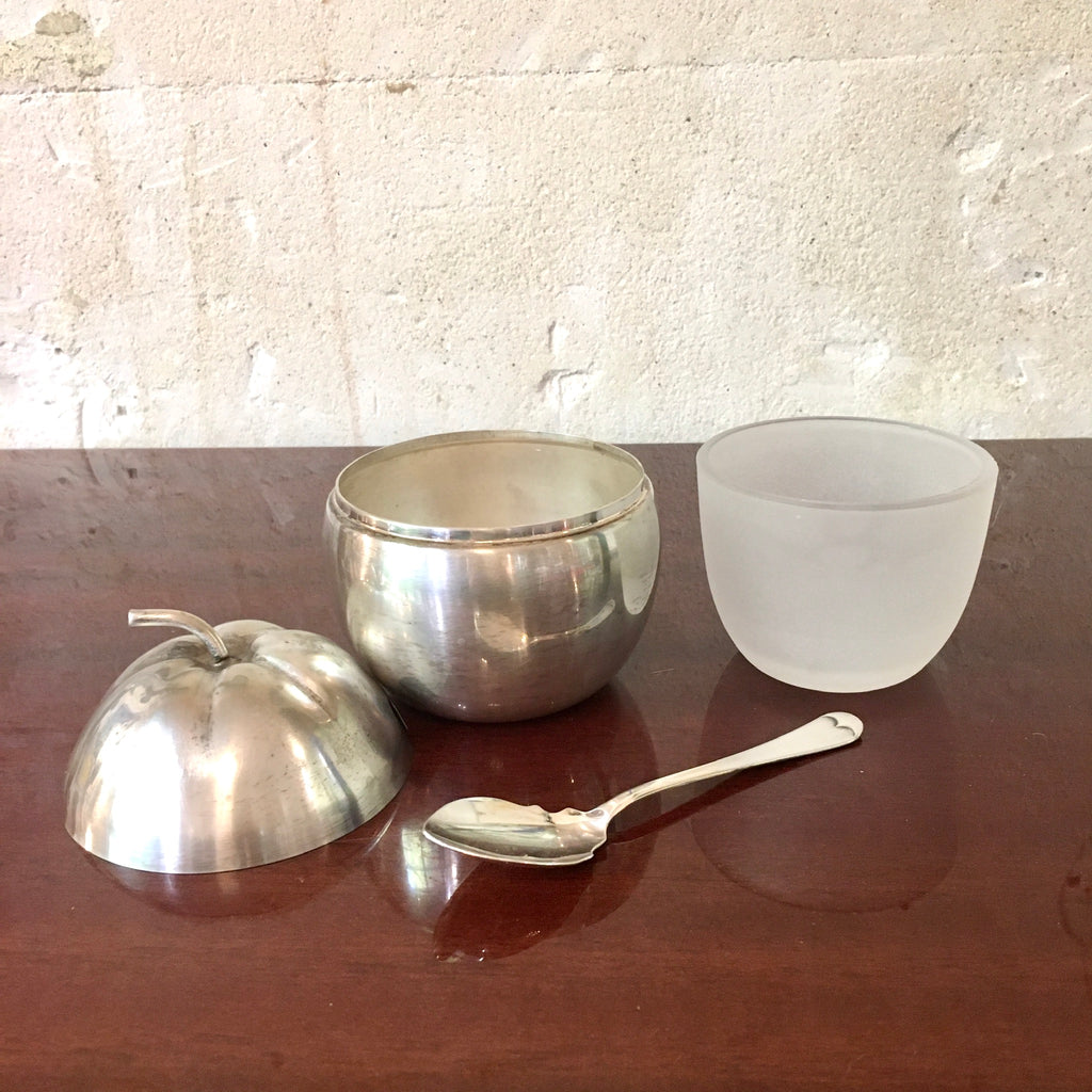 Il est vendu avec une petite cuillère également en métal argenté EPNS made in England.
