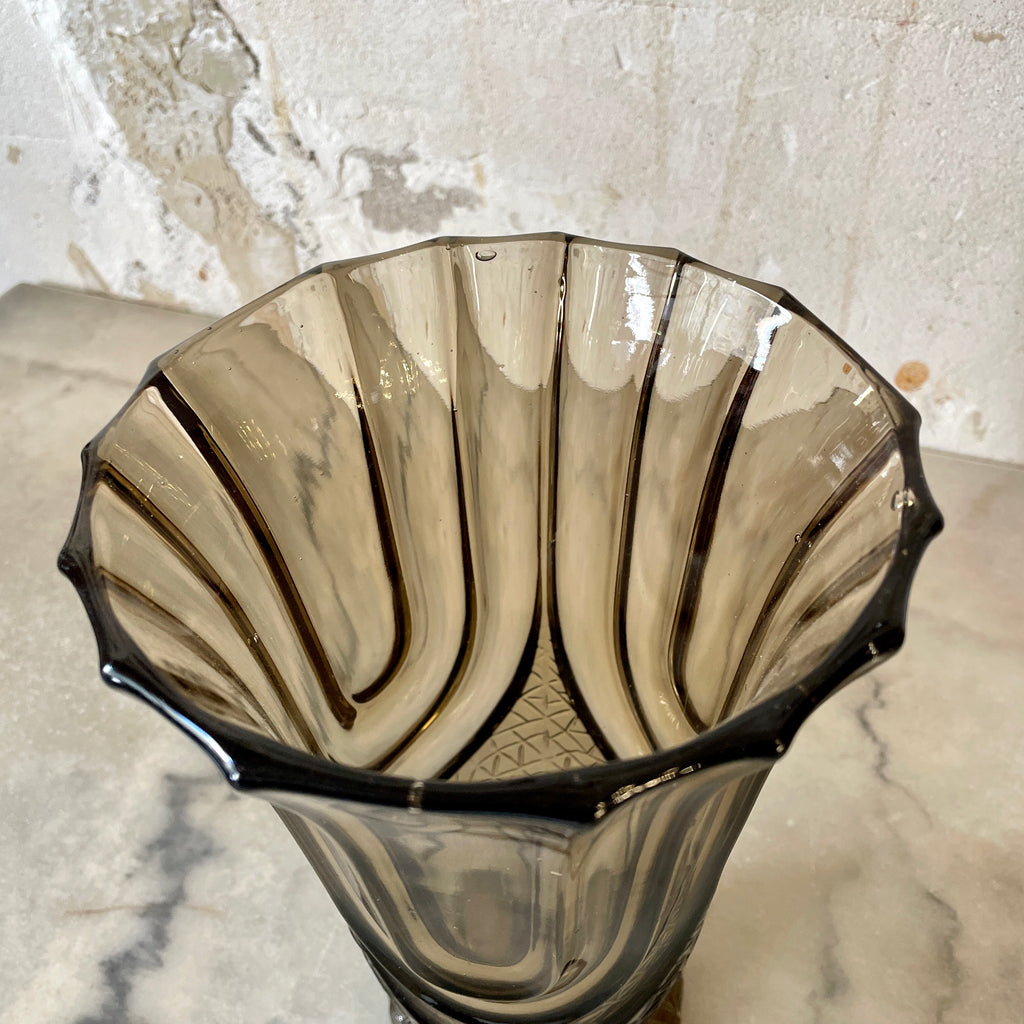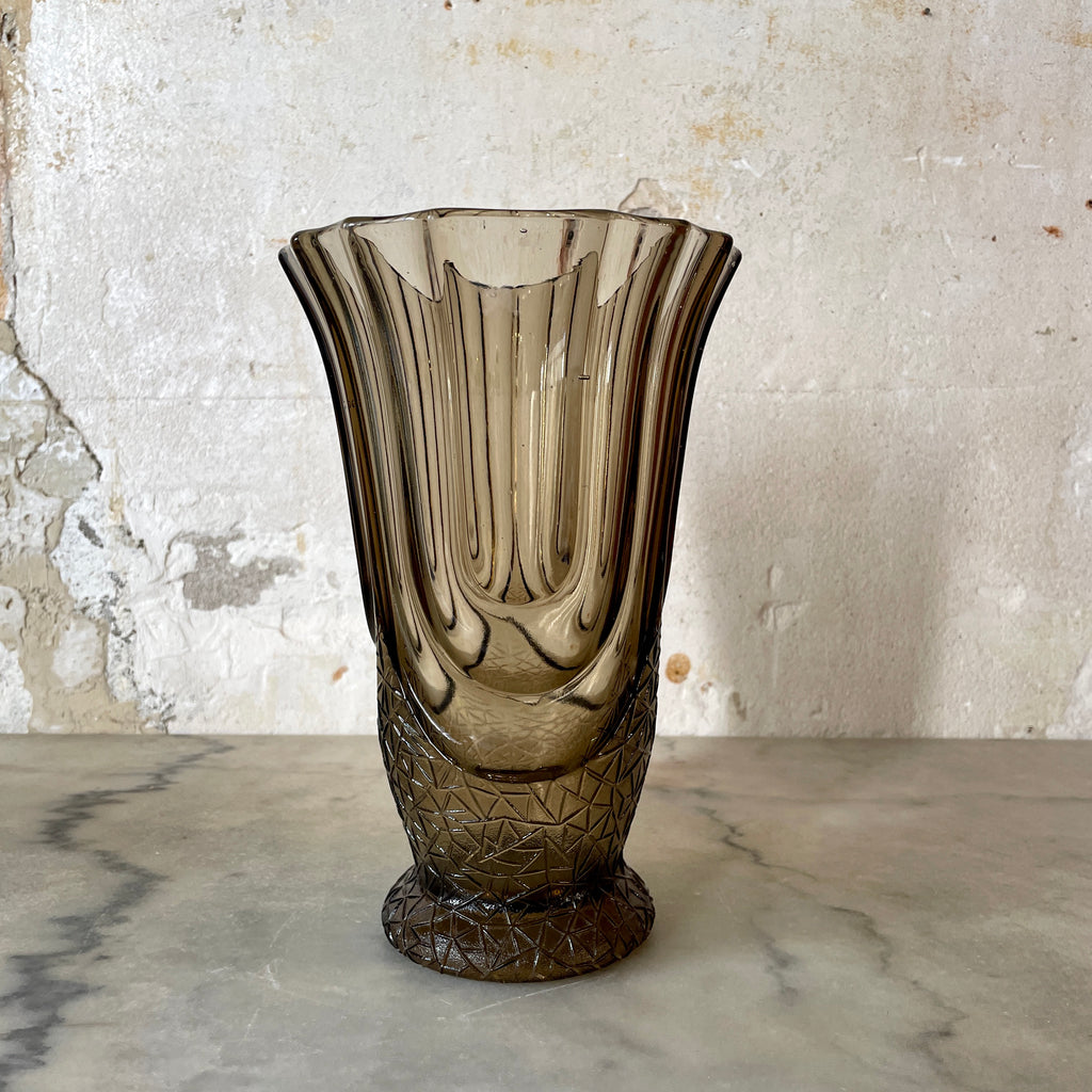 / Vase Art Déco en verre fumé verrerie de Scailmont, Belgique