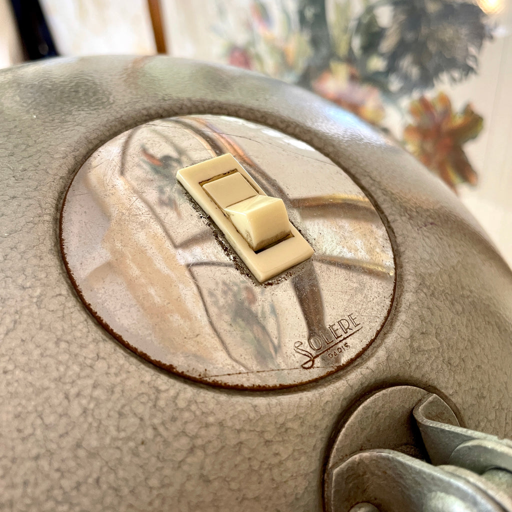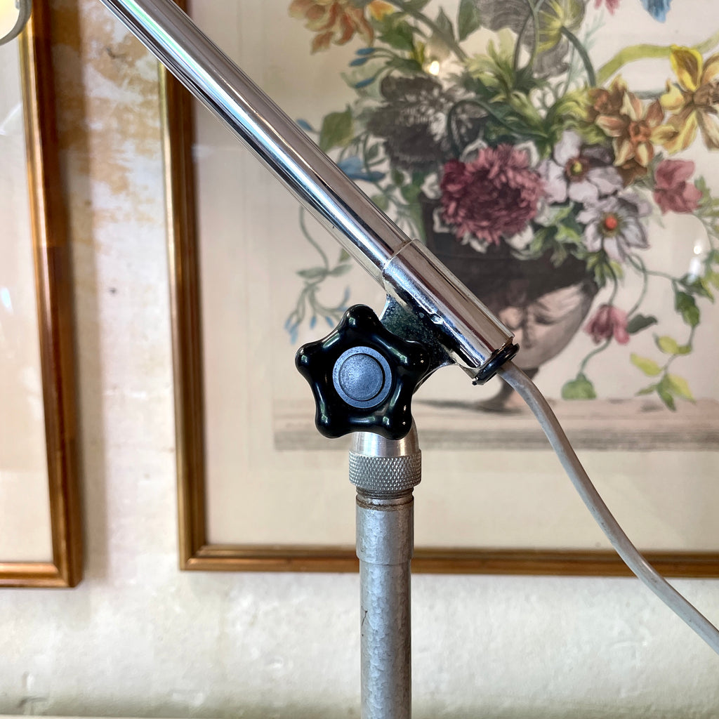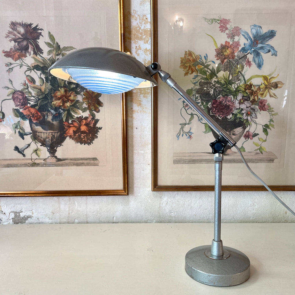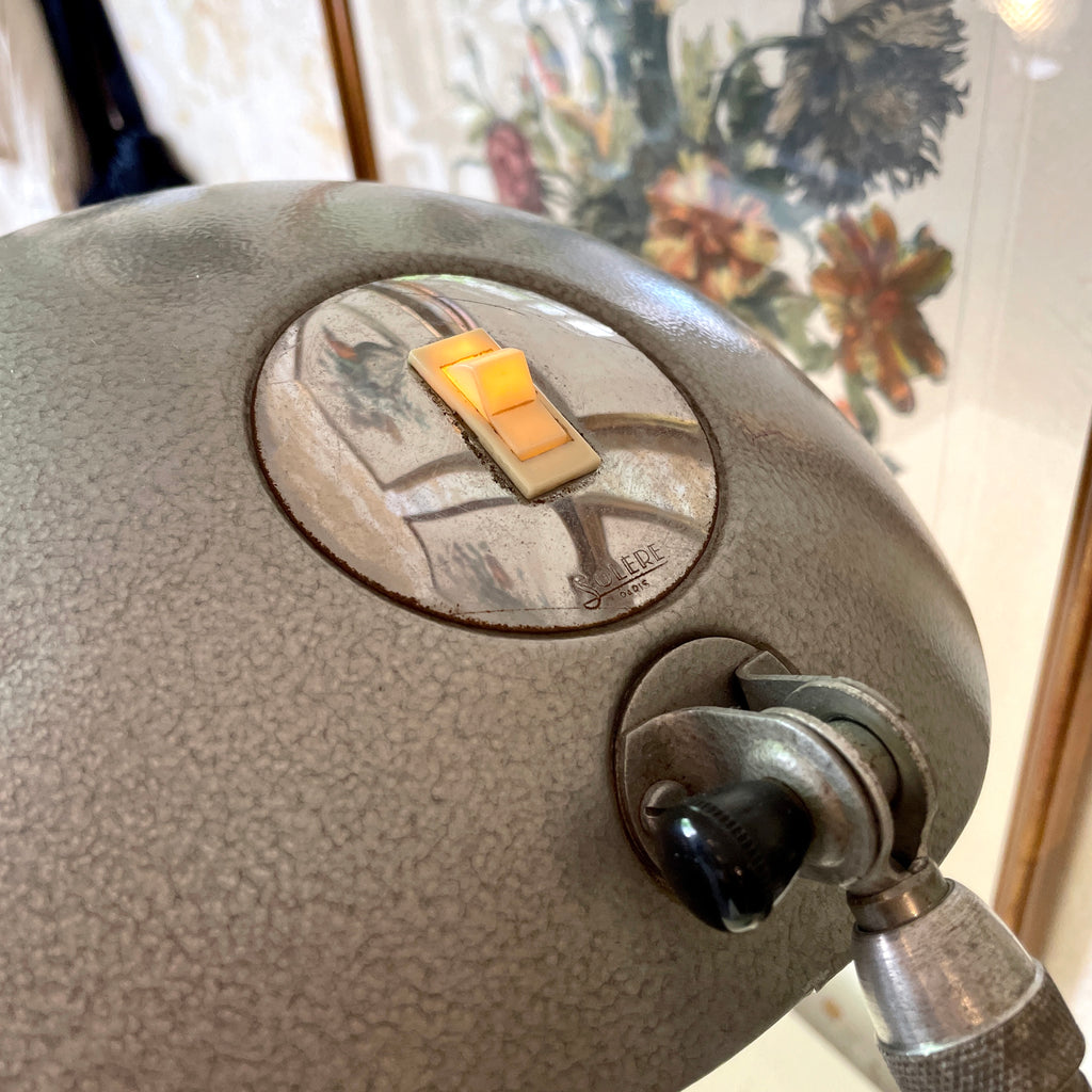 Lampe de bureau d'architecte de Ferdinand Solere années 50. Complète avec encore présent le tamiseur diffuseur en résine bleu ciel