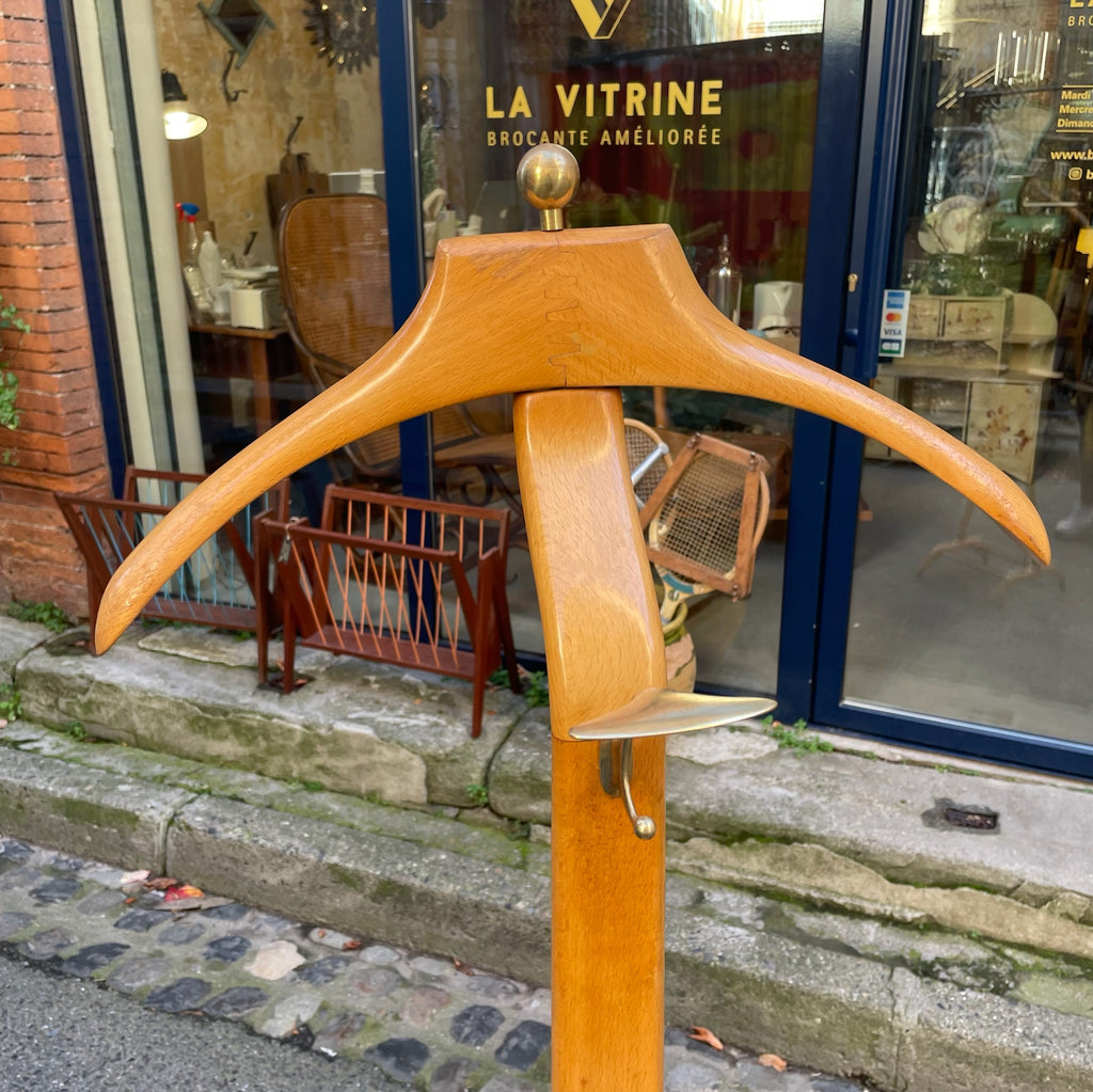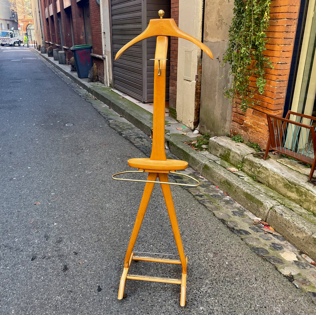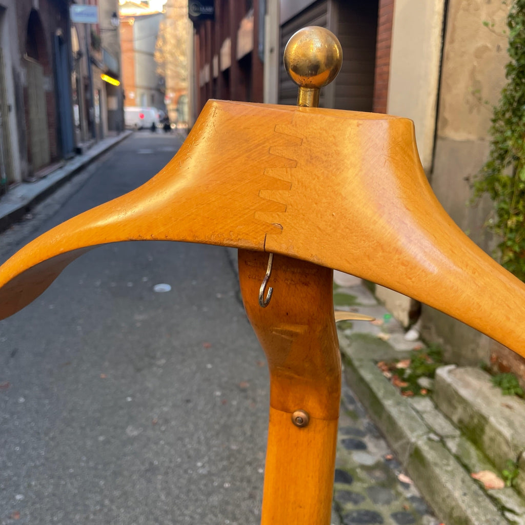 Valet de chambre attribué au designer italien Ico Parisi pour Fratelli Reguitti en hêtre massif et laiton. Démontable en 2 parties.