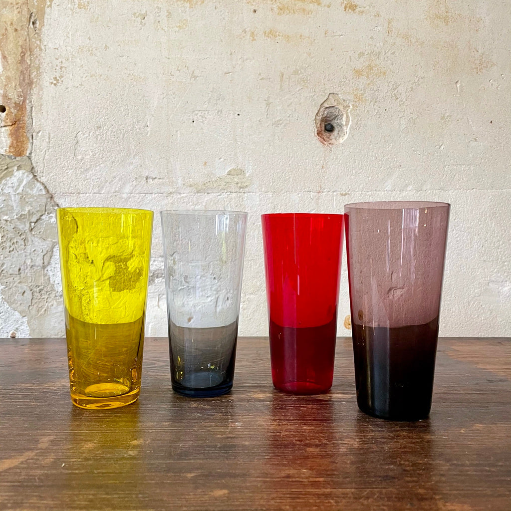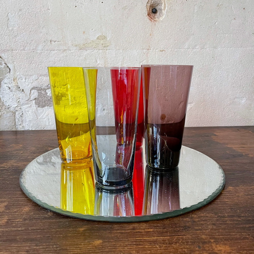 Lot de 4 verres haut (en couleur) à eau, limonade ou cocktail. Rouge, jaune, bleu, violet.
