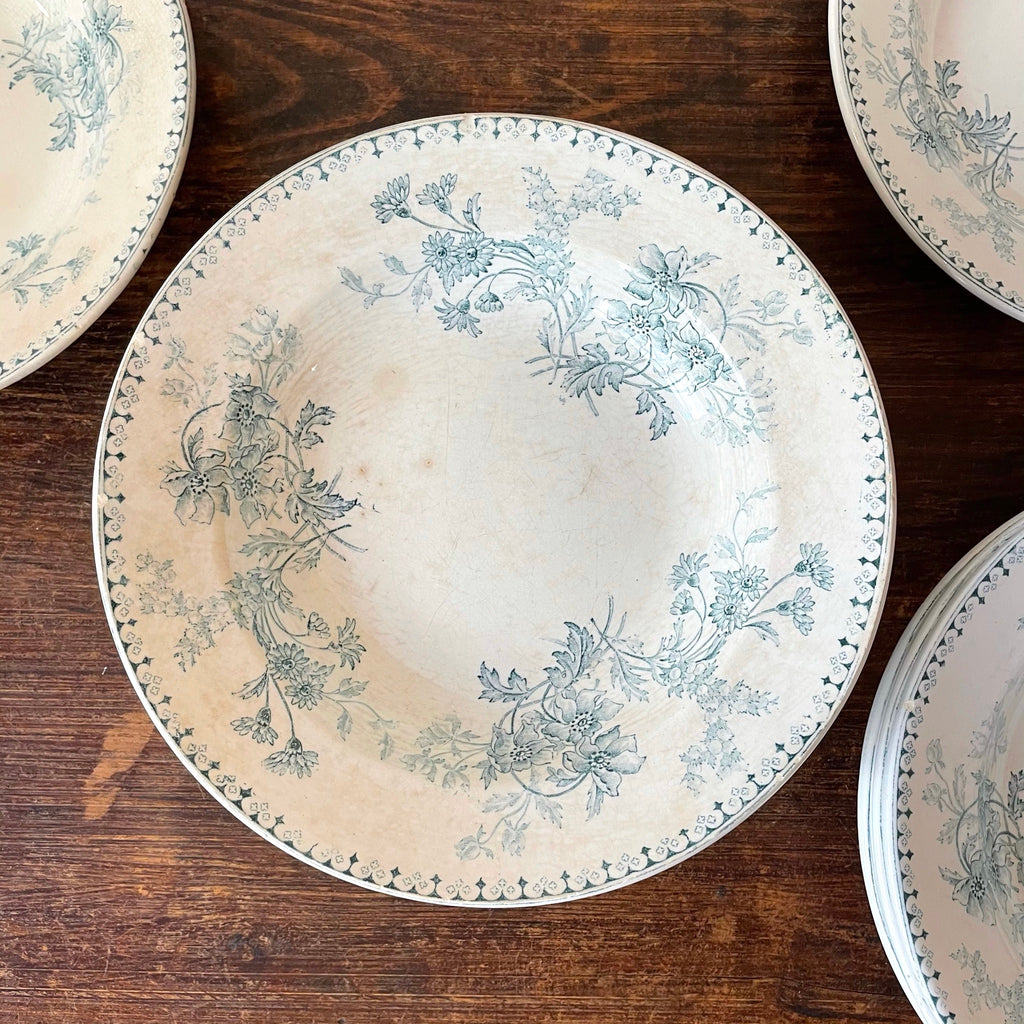 Assiette à soupe en faïence de Sarreguemines, modèle Elvire. A partir de 1918, modèle plus récent.