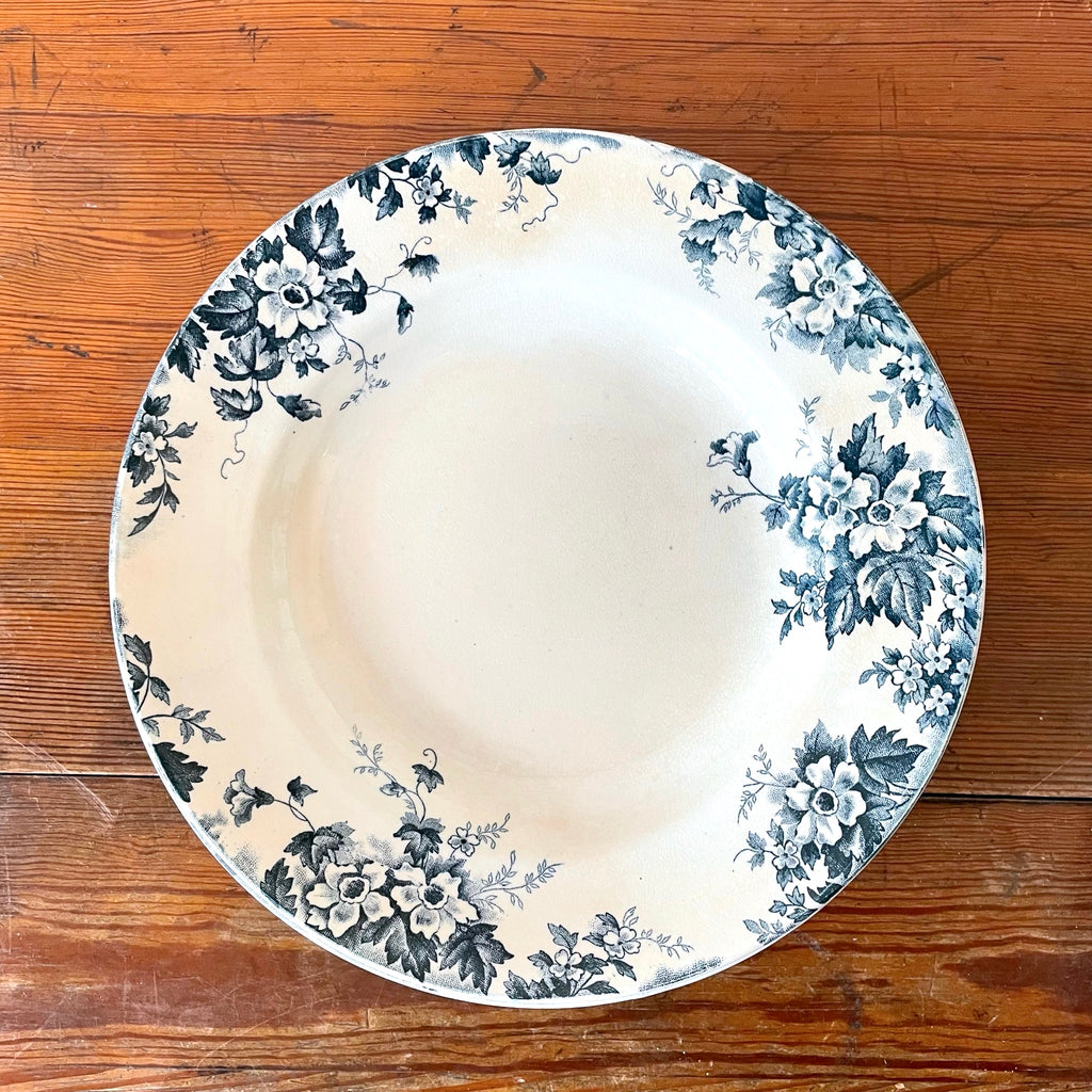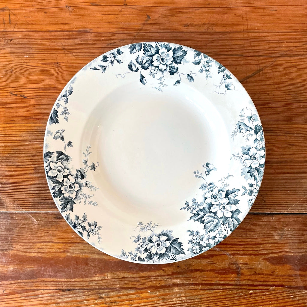 Jolie assiette au décor de fleurs bleu vert modèle Marie-Louise.
