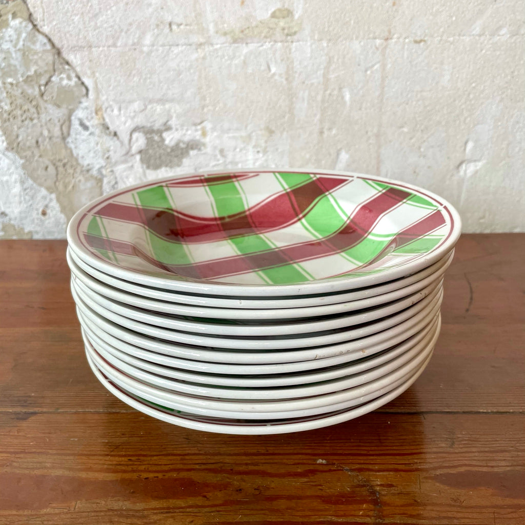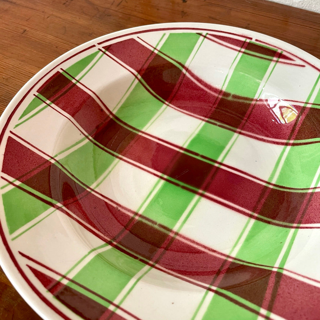 Assiette à soupe très colorée pour ce modèle à carreaux Sousse de la faïencerie de Sarreguemines.