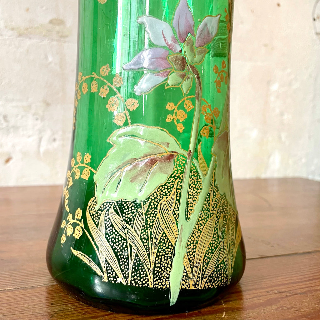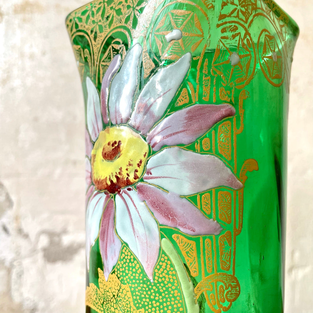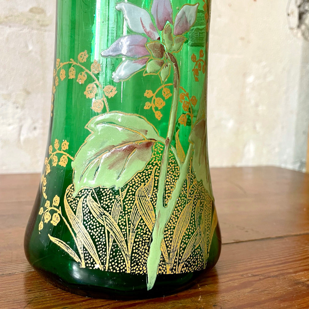 Vase en verre émaillé vert Art Nouveau