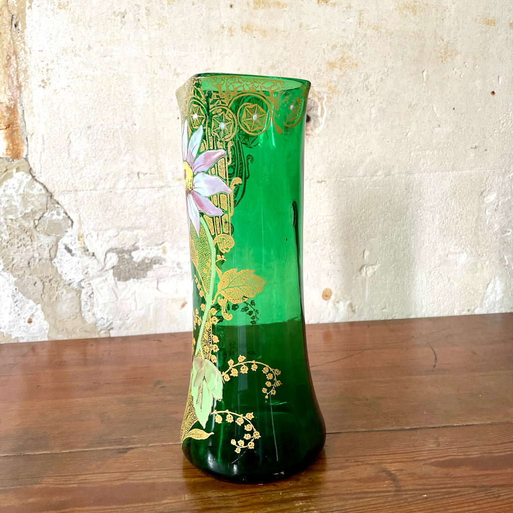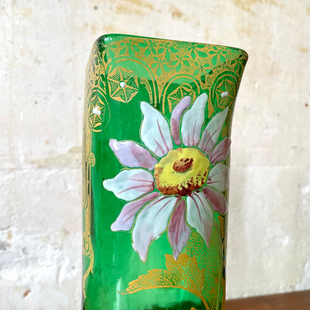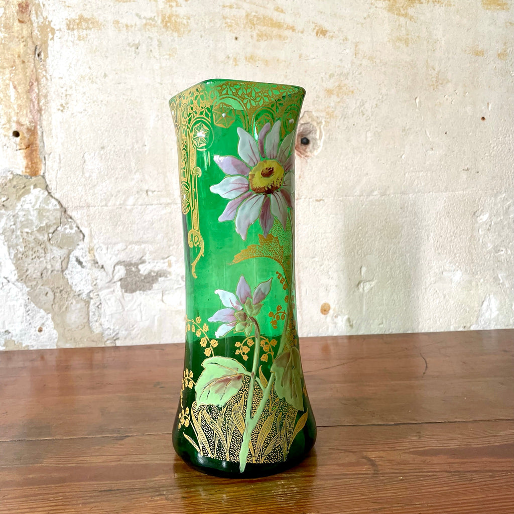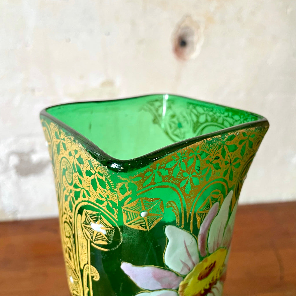 Vase en verre émaillé vert Art Nouveau