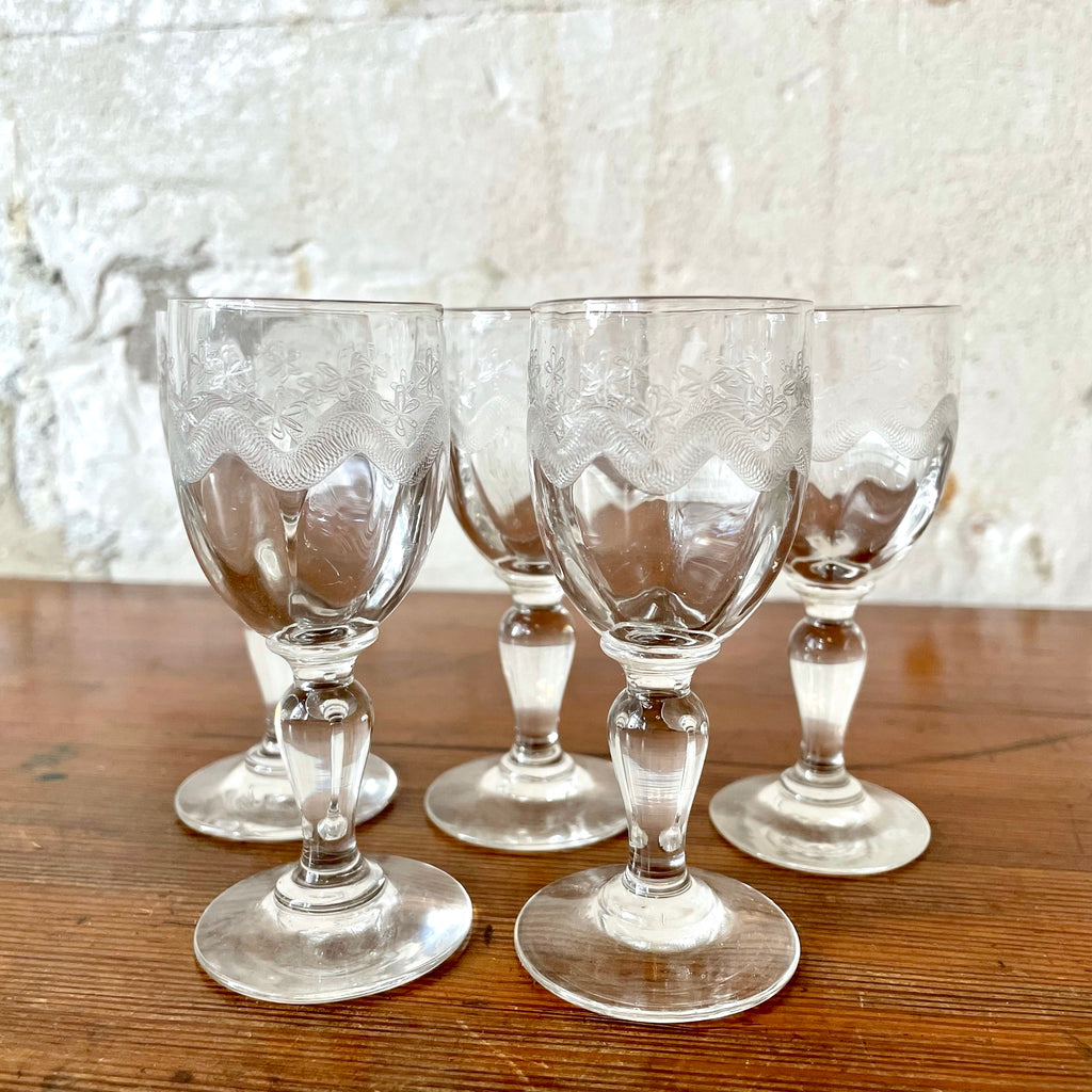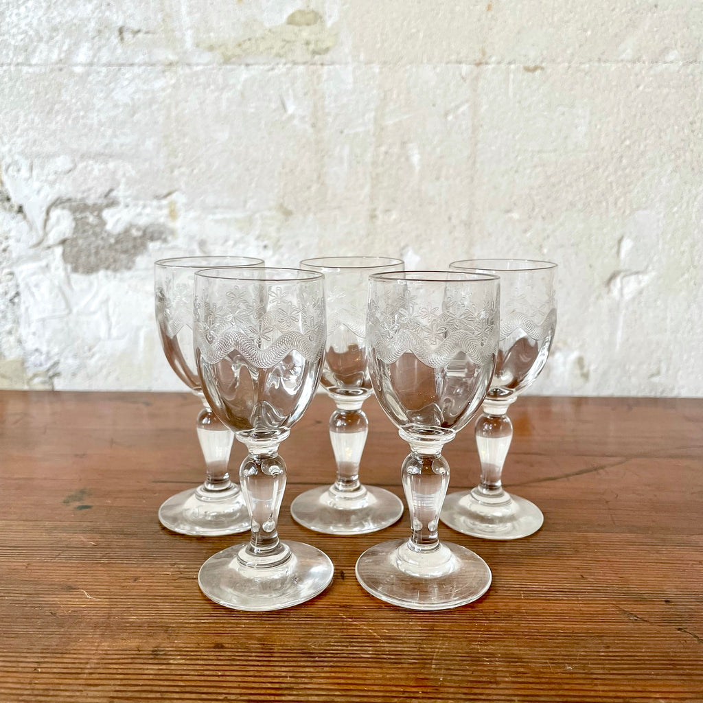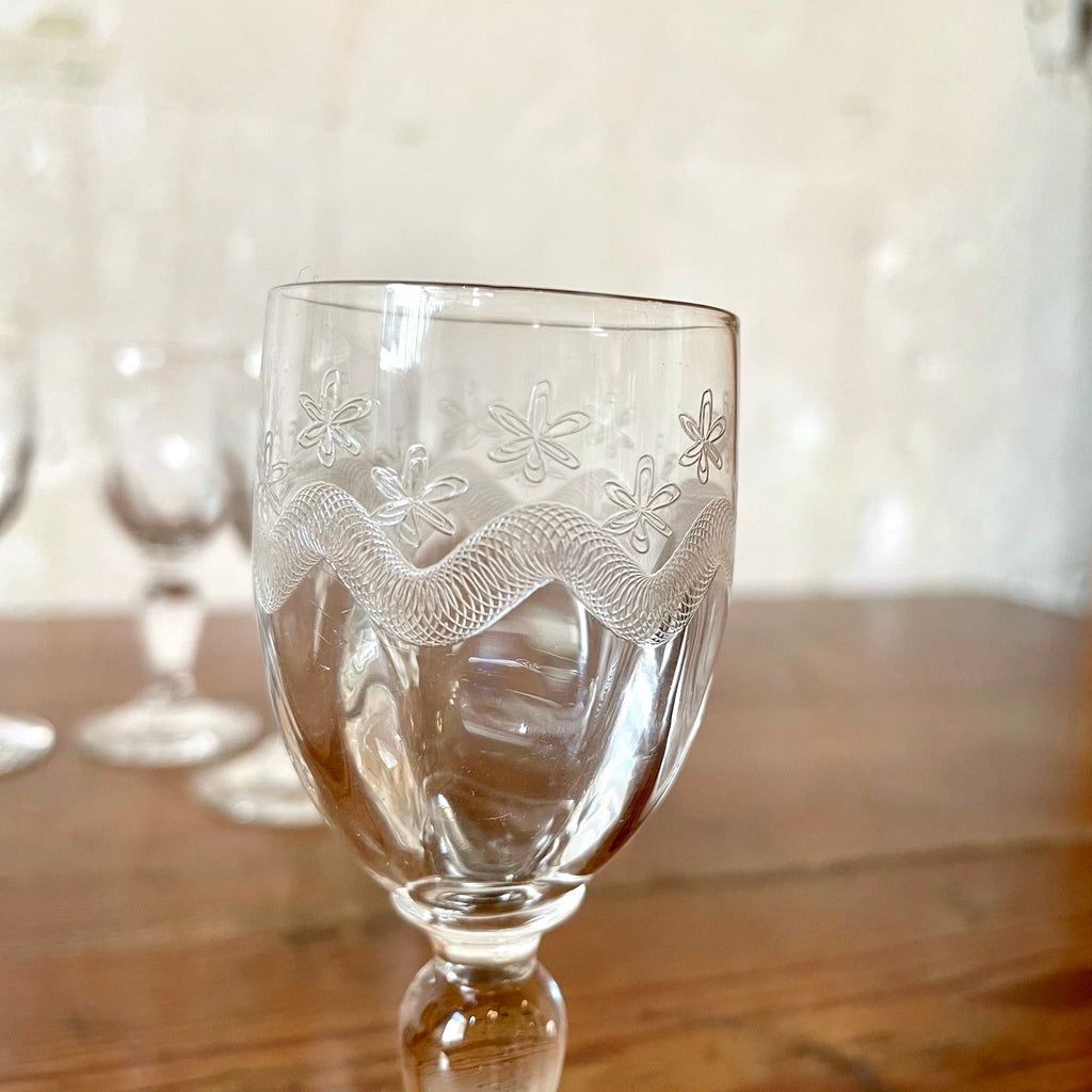 Verre à liqueur ou digestif en verre soufflé et guilloché de la verrerie Portieux, modèle Emma.
