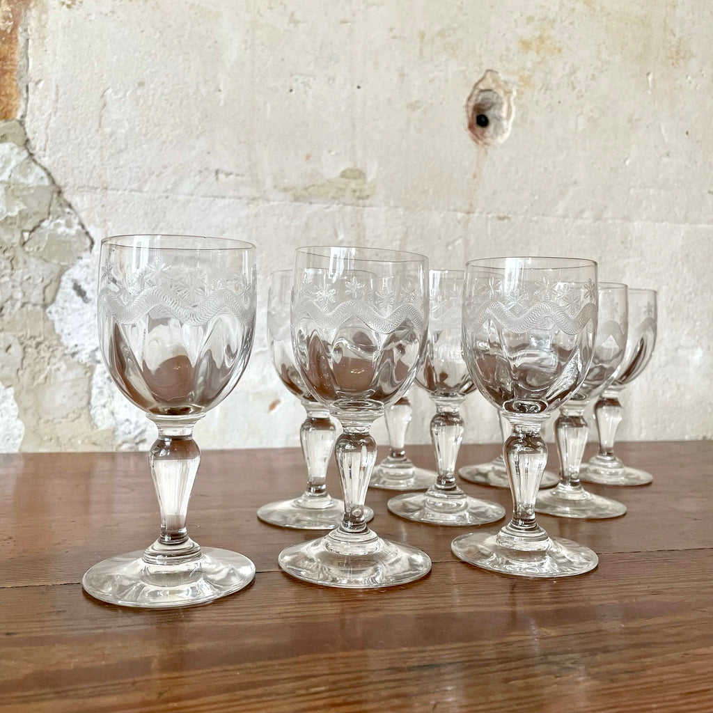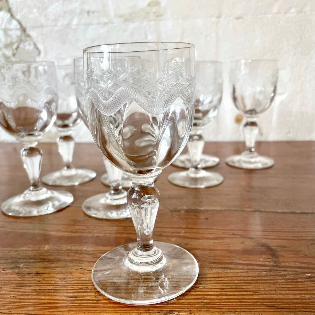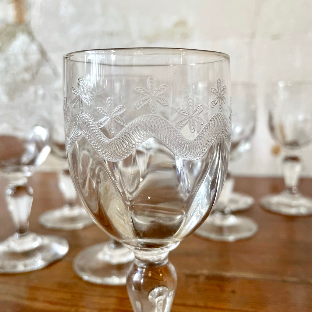 Verre à vin ou à porto en verre soufflé et guilloché de la verrerie Portieux modèle Emma.